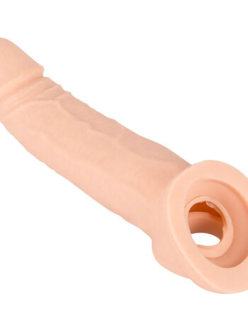 Real Feel Penisforlænger med Sele – +5 cm Hul Dildo med Testikelring