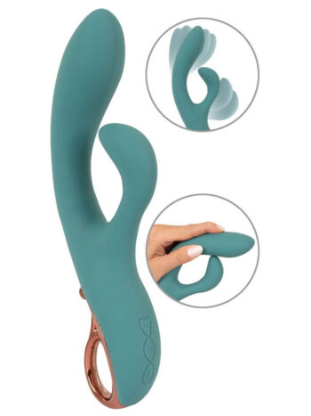 Den særlige konstruktion gør rabbit vibratoren til noget helt særligt. Det indre skaft stimulerer skede og G-punkt, mens den fleksible arm udenpå sørger for målrettet klitorisstimulation. Kombinationen af de to kilder til nydelse giver mulighed for at opnå hurtigere og kraftigere orgasmer – ofte uden behov for yderligere stimulation.