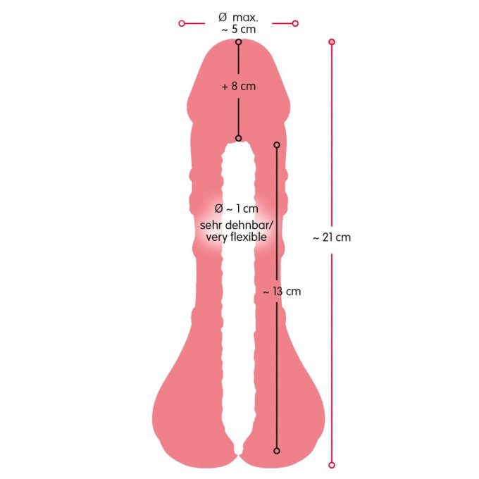Med en samlet længde på 21 cm, en indsættelsesdybde på 13 cm, en ydre diameter på 4,2-5 cm og en indre diameter på 1 cm er den ekstremt fleksibel og passer til forskellige størrelser.