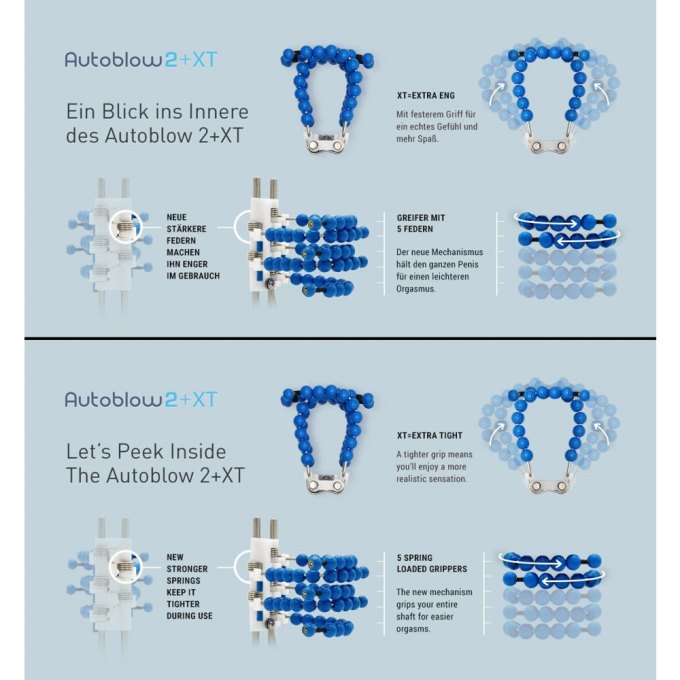Autoblow fungerer ved at indsætte penis i den realistiske sleeve, hvorefter motoren aktiverer de op- og nedadgående bevægelser. De elastiske fjederbevægelser omslutter dig tæt og skaber en følelse af sugende, rytmisk stimulation.