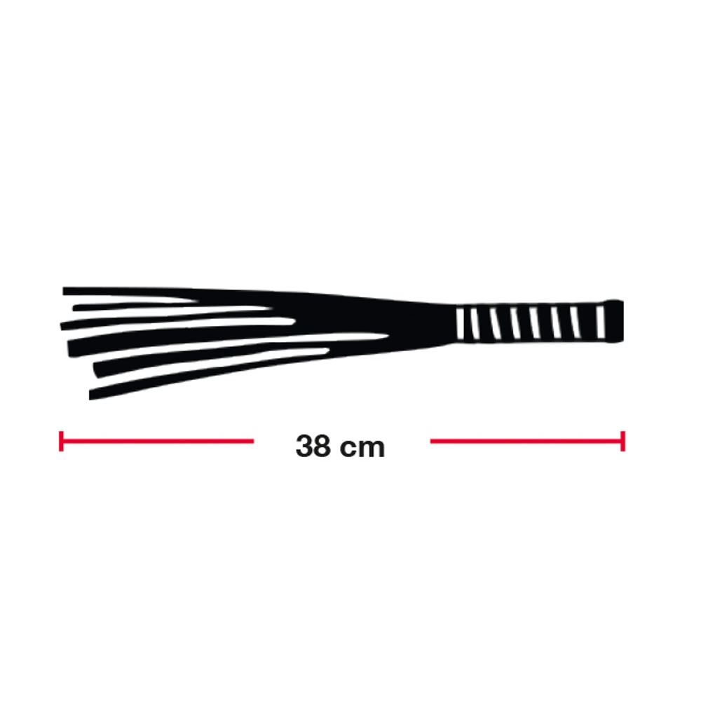 Med en total længde på 38 cm og et blødt greb, giver den dig fuld kontrol, mens de bløde læderstrimler kærtegner huden med lette eller mere faste slag.