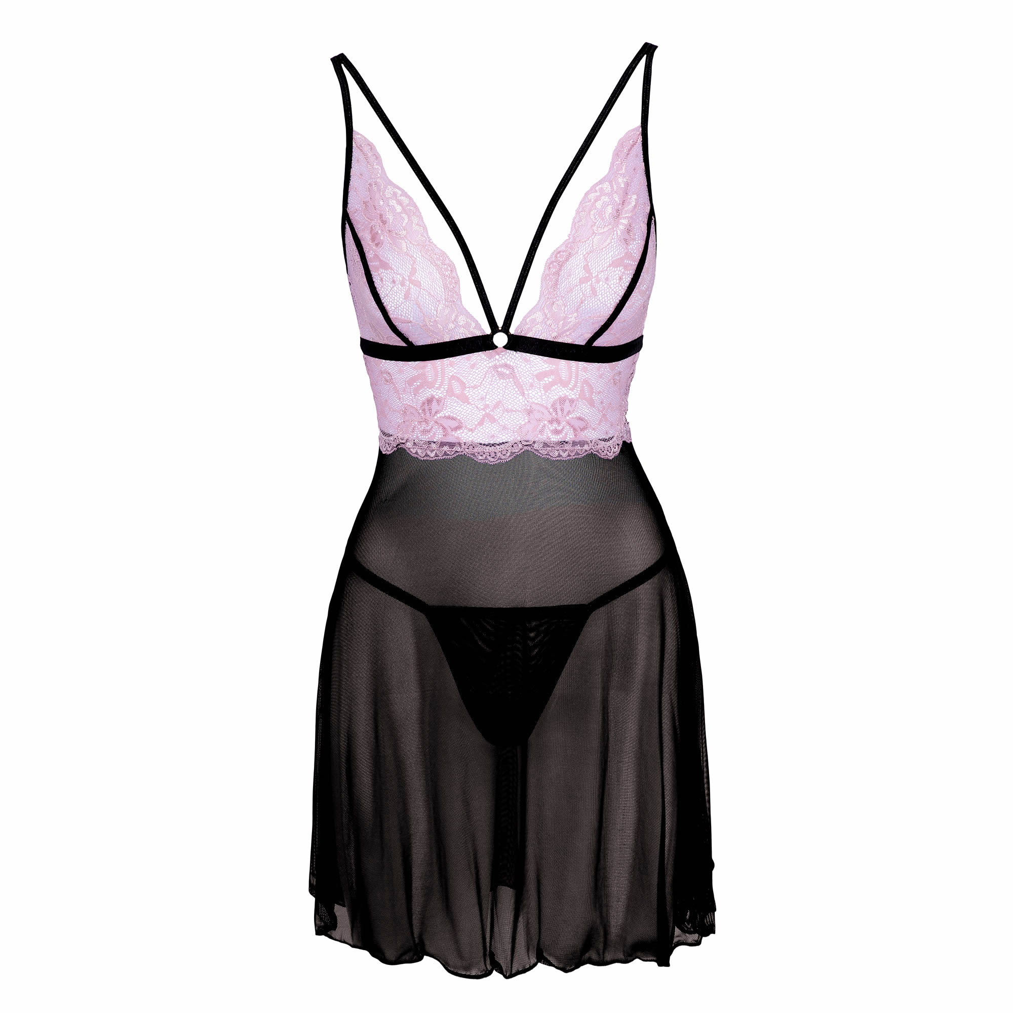 Forførende Kort Blonde babydoll i Rosa og Sort i Powernet & Blonder – Sensuel & Elegant