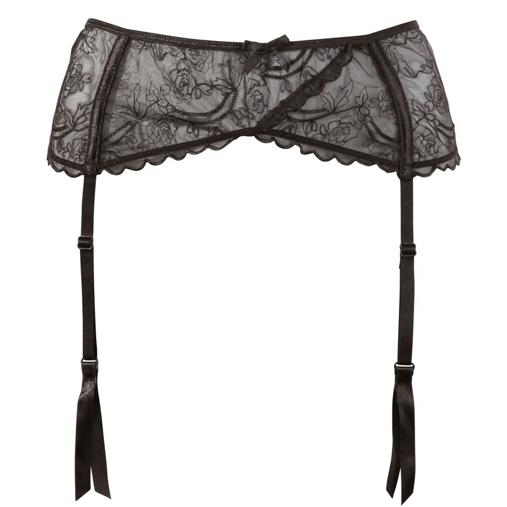 Den sorte blonde giver hofteholderen et let, gennemsigtigt udtryk, der elegant indrammer dine hofter og mave. Den florale struktur tilføjer et romantisk twist, mens det stramme fit giver et sexet og flatterende look. Bær den sammen med en g-streng og selvsiddende strømper – og du er klar til at forføre!