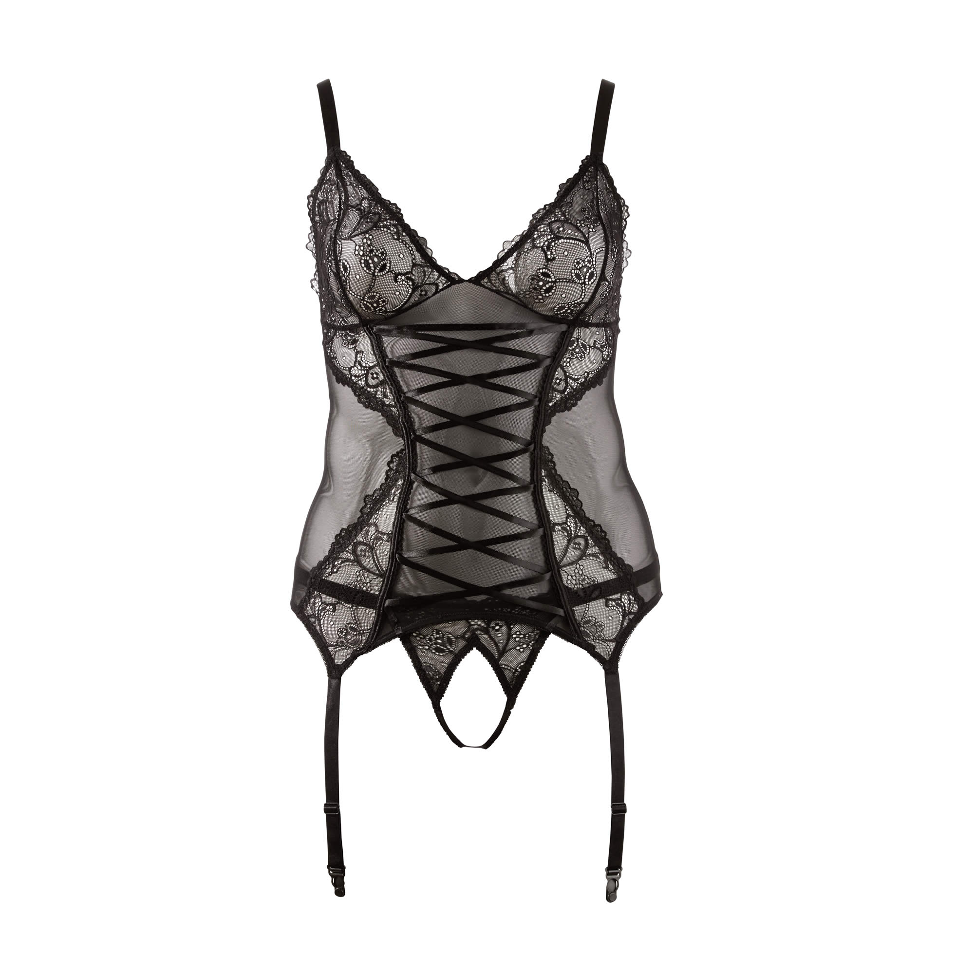 Sættet er udstyret med justerbare skulderstropper og strømpeholdere, så du kan tilpasse pasformen præcist efter dine kurver og dine yndlingsstrømper.