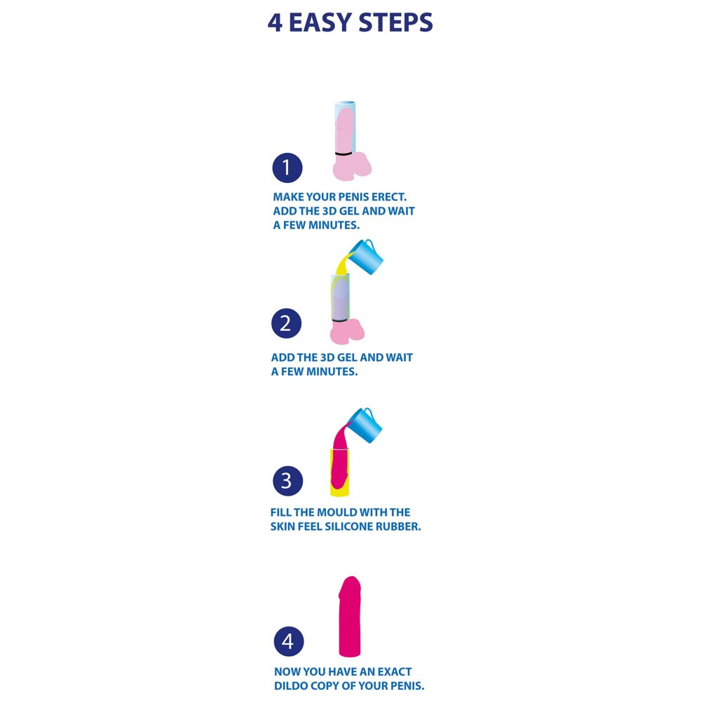 Sættet er brugervenligt og kræver ingen erfaring. Du starter med at blande 3D-geléen og laver en støbeform af din erigerede penis.