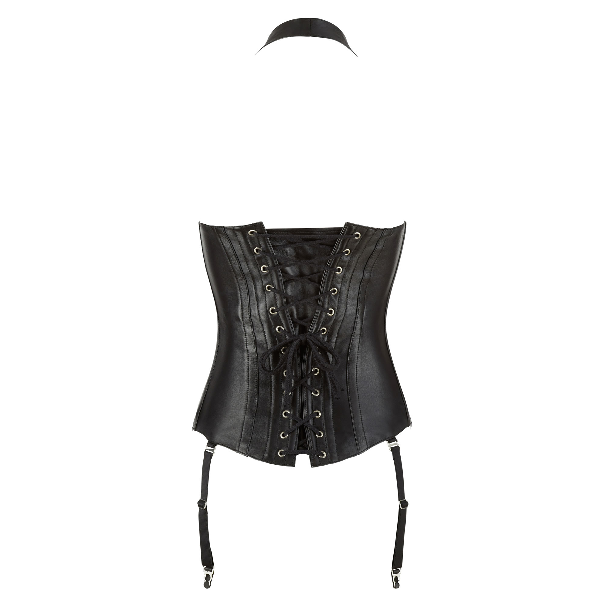 - Detaljer: Lynlås foran, biker-inspireret design, justerbare bh-stropper & strømpeholdere