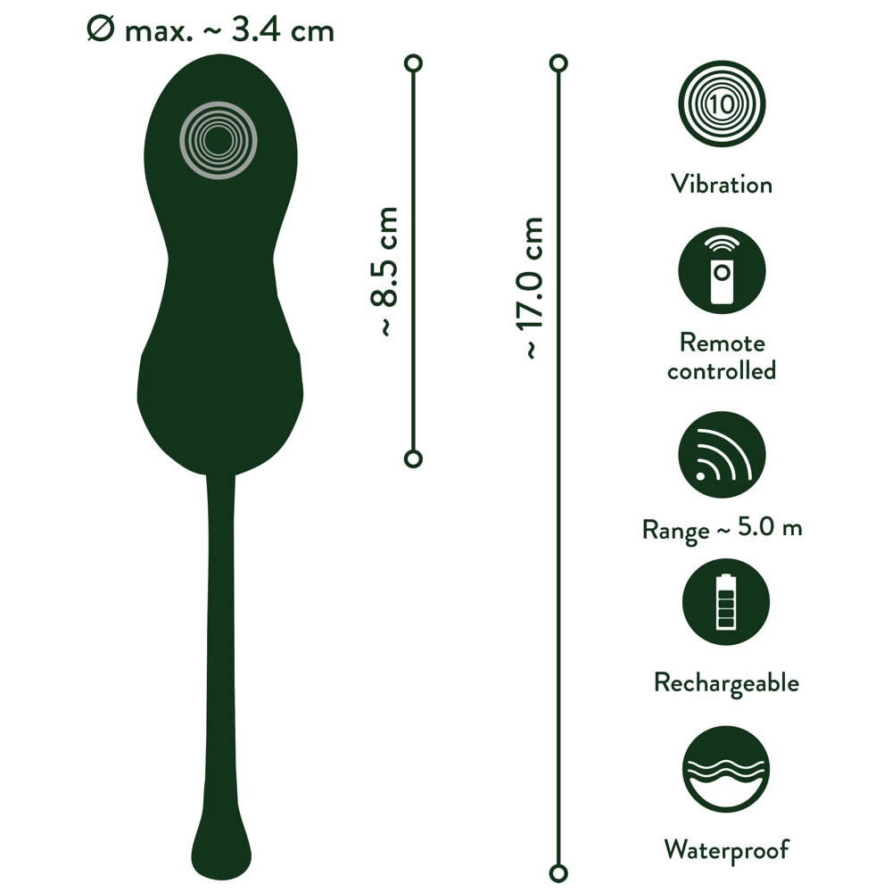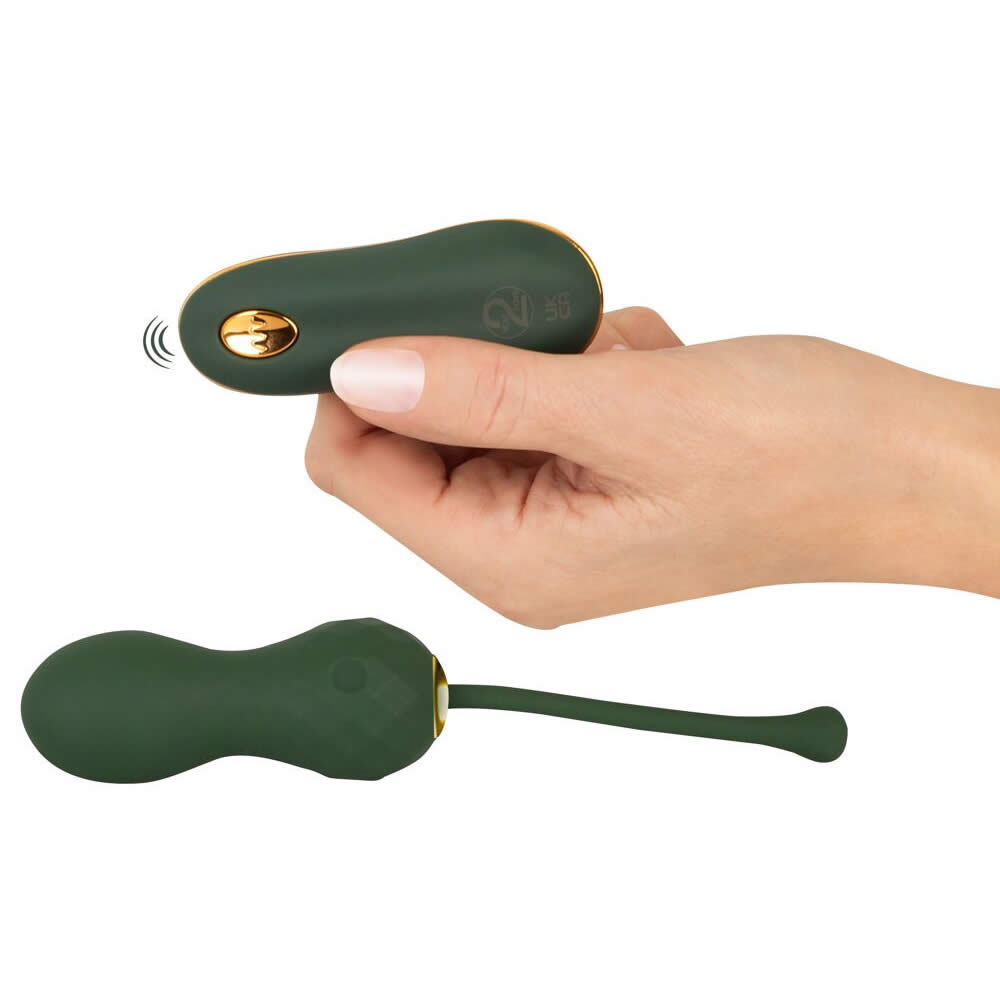 De kraftige vibrationskugler er designet i en smuk smaragdgrøn farve med elegante guldfarvede detaljer, hvilket giver et eksklusivt look.
