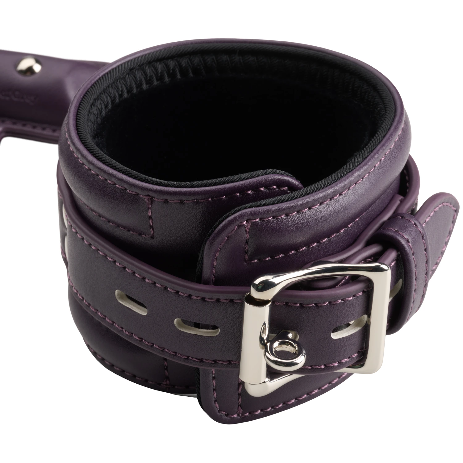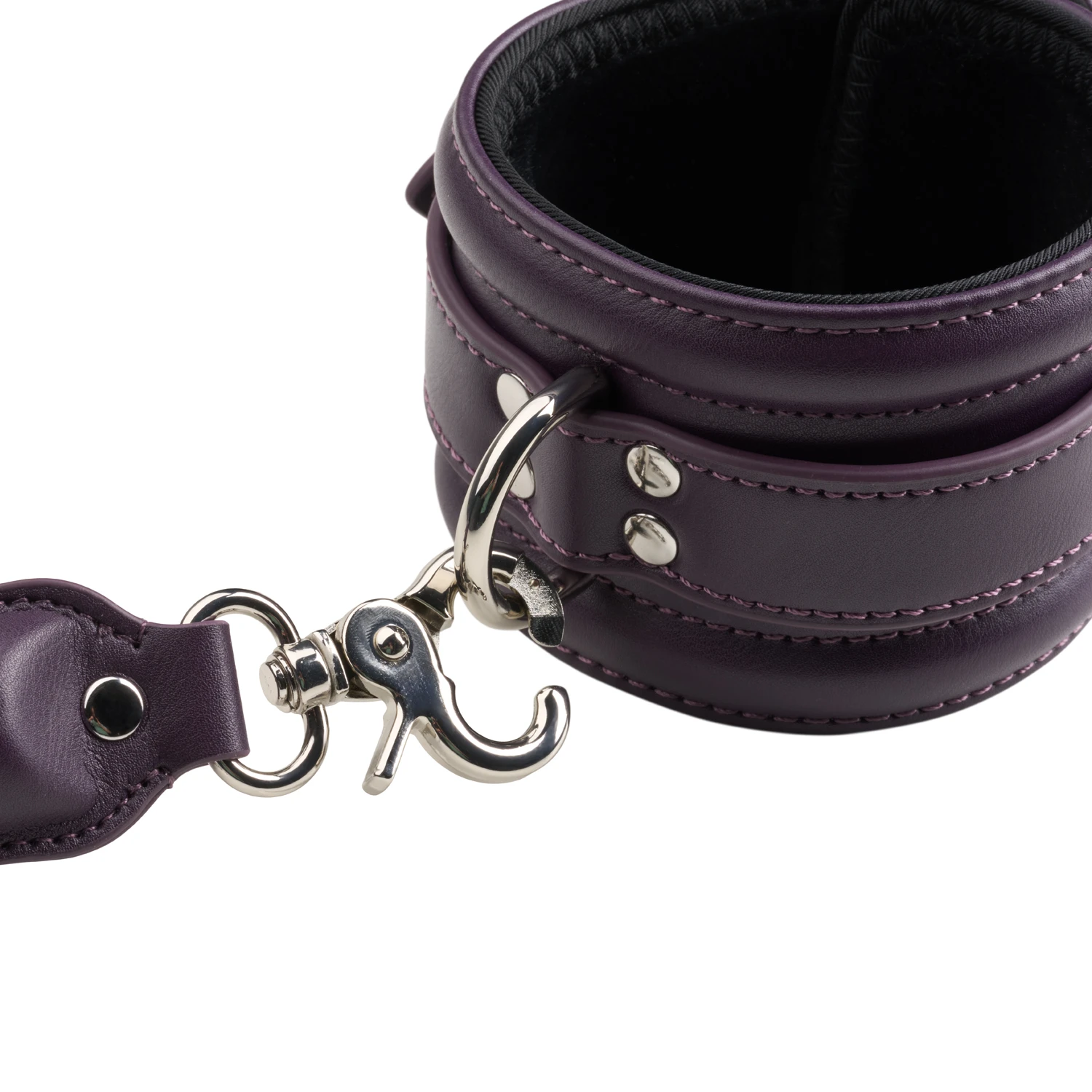 Med sin dybe lilla farve, rosegulddetaljer og imiteret læder i eksklusivt design, løfter den bondage til et nyt niveau – hvor æstetik og dominans smelter sammen.