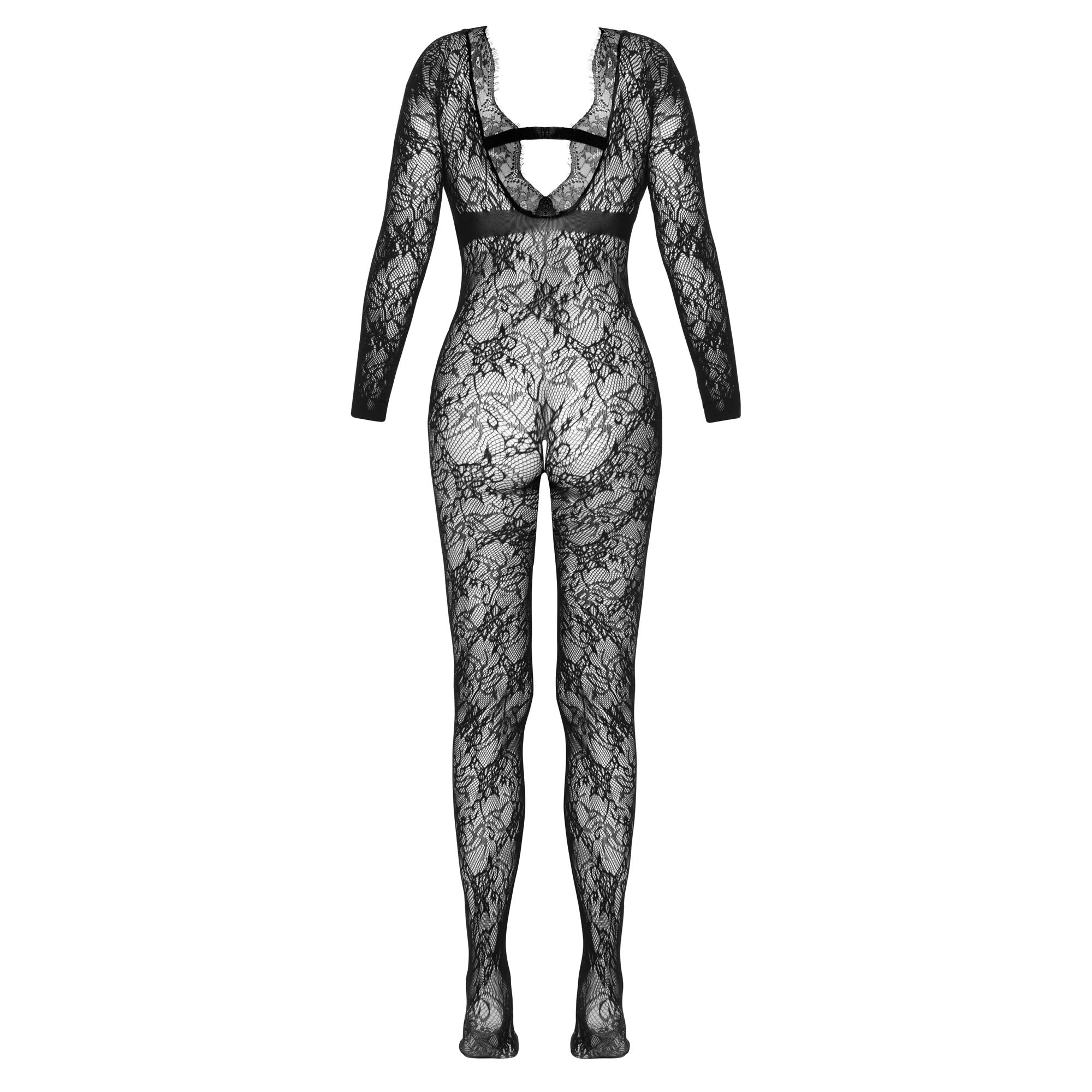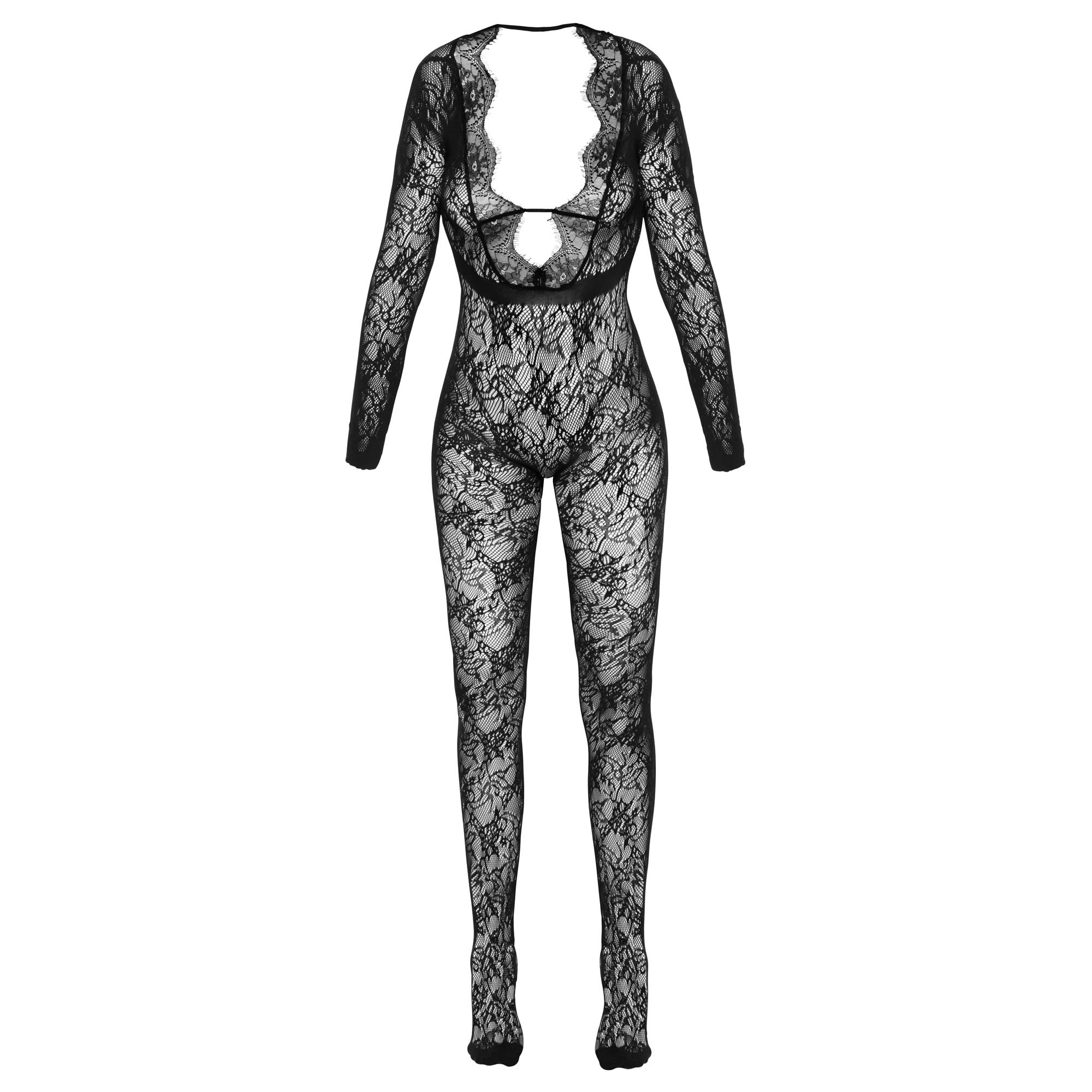 Cottelli FANTASY Langærmet Skridtløs Catsuit – Sensuel Blonder & Dyb Udskæring