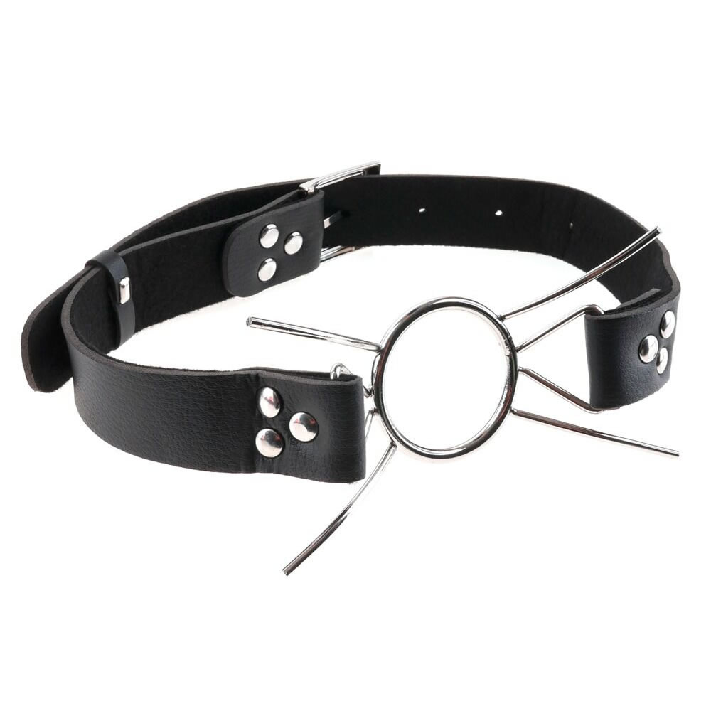 Designet til dominanslege og fetishelskere, sikrer den robuste metalring, at munden forbliver åben, mens de fire buede stivere i poleret stål giver ekstra stabilitet.