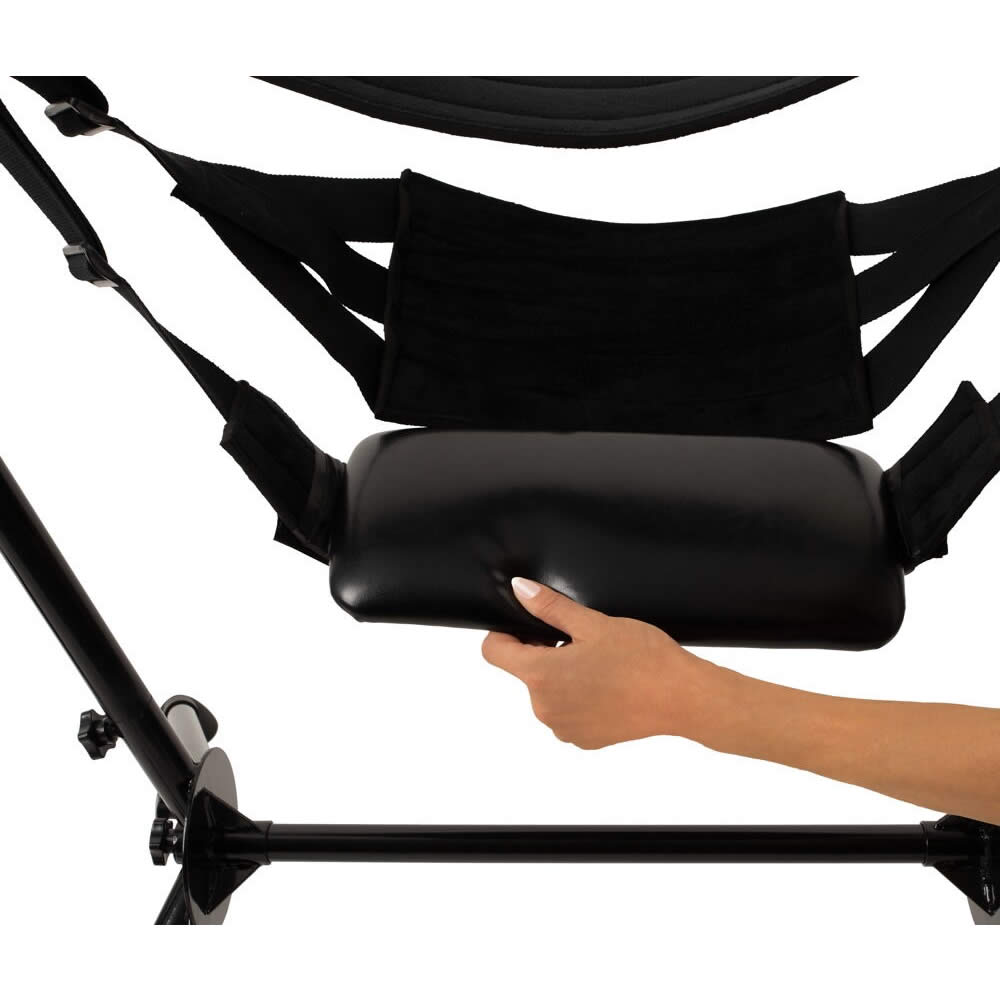 Sæt dig i det bløde sæde, placer hænder, fødder eller ben i de justerbare stropper og lad din partner tage styringen.