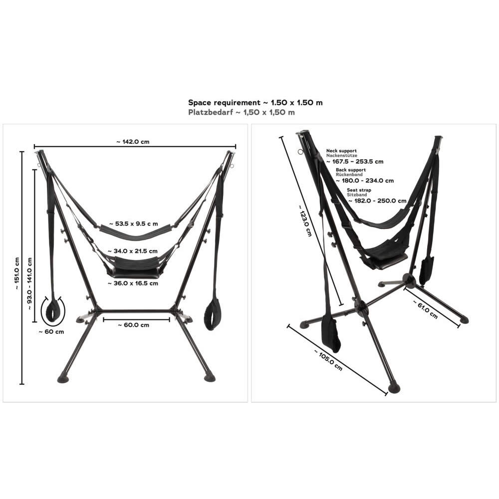 - Midterstang: 60 cm | Standere: 61 cm | Sidestænger: 123 cm