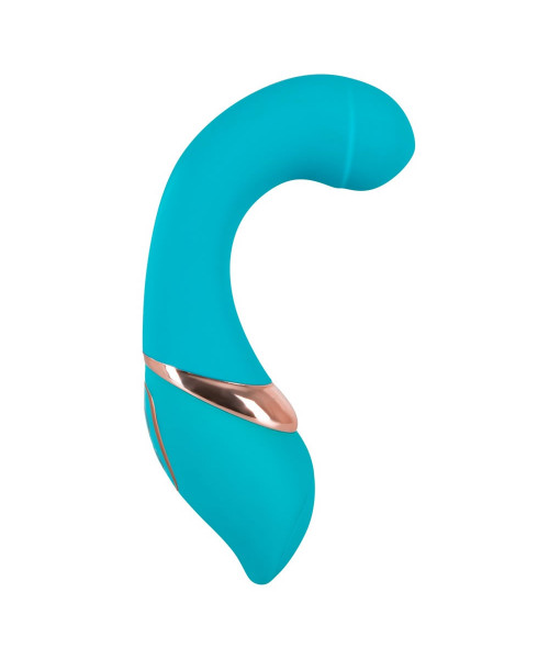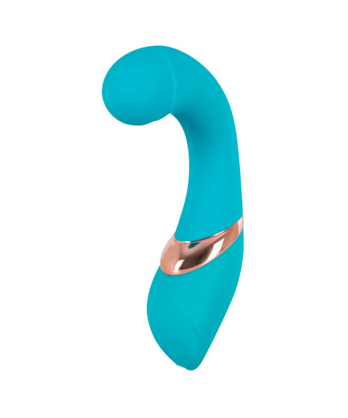Den turkisfarvede vibrators tykke spids finder let og hurtigt dit G-punkt, og masserer og pirrer også din klitoris. Den ekstremt behagelige fornemmelse af hud, som den fløjlsbløde silikoneoverflade giver dig, er simpelthen ubeskrivelig! Det stærkt buede Lovetoy har en let bøjelig arm, og styres let og brugervenligt ved hjælp af to betjeningsknapper! Denne handy vibrator har med sine 7 forskellige intensitetstrin alt – lige fra blid kildren til storm! Den opfylder ethvert ønske! Samlet længde (krum) 15,5 cm. Ø 2,3 til 3,3 cm. Materiale: ABS med PU overflade, ftalatfri jvf. til EU-forordning 1907/2006/EC. Batterier bestilles separat: 2 x micro/AAA.