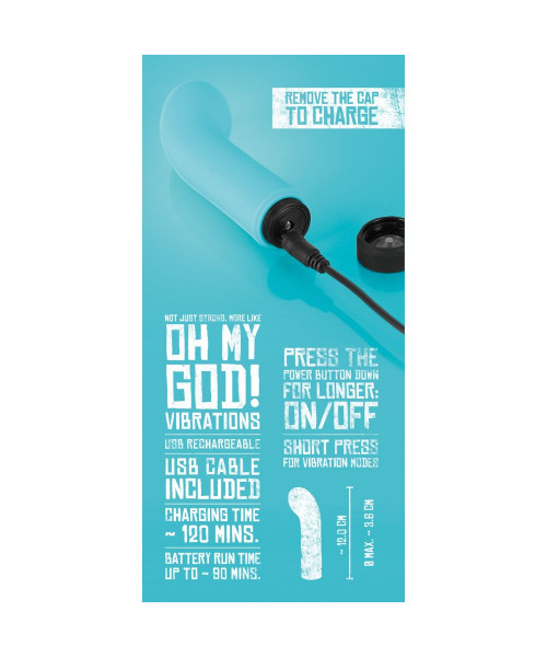 Den turkise vibrator får kvindehjerter til at banke – ikke kun på grund af den hippe farve, men især på grund af dens specielle form. Det lige skaft ender i en kraftigt bøjet og fortykket spids, der kun venter på at kunne forkæle G-punktet. Med 10 kraftfulde og dog meget lydsvage vibrationsmodi, der styres via tastetryk. Vandtæt. Genopladelig med vedlagte USB kabel.