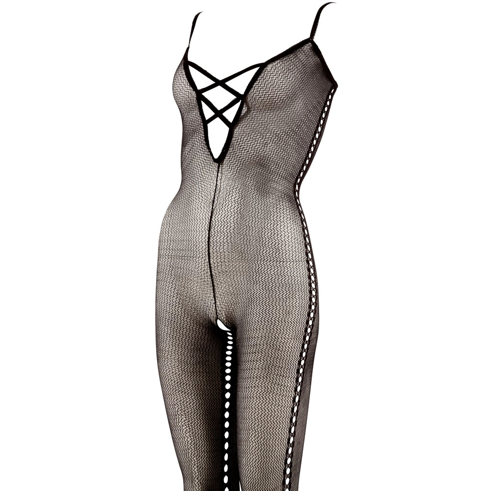 Ophidsende transparens fra top til tå! Catsuit i elastisk, sort net med fod.