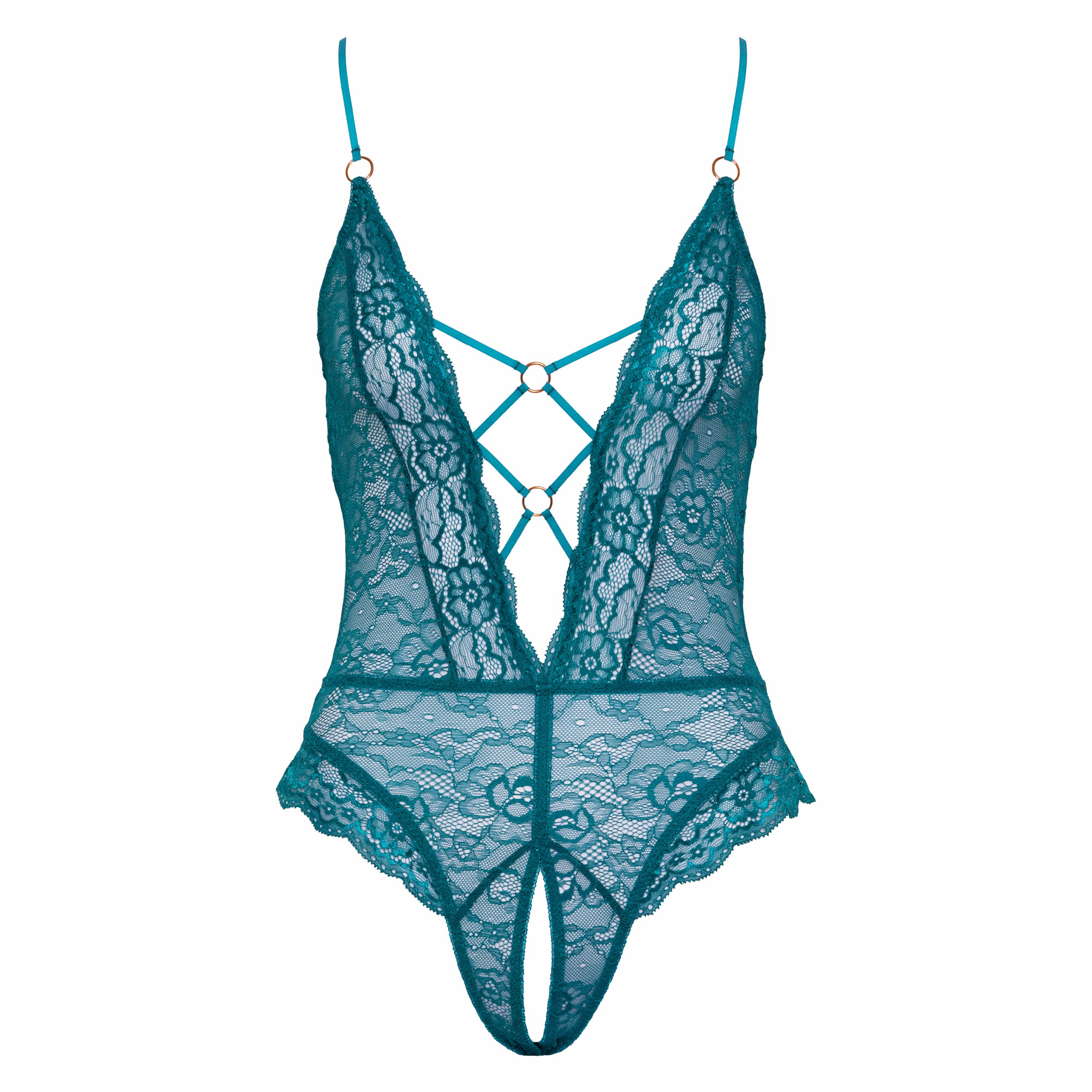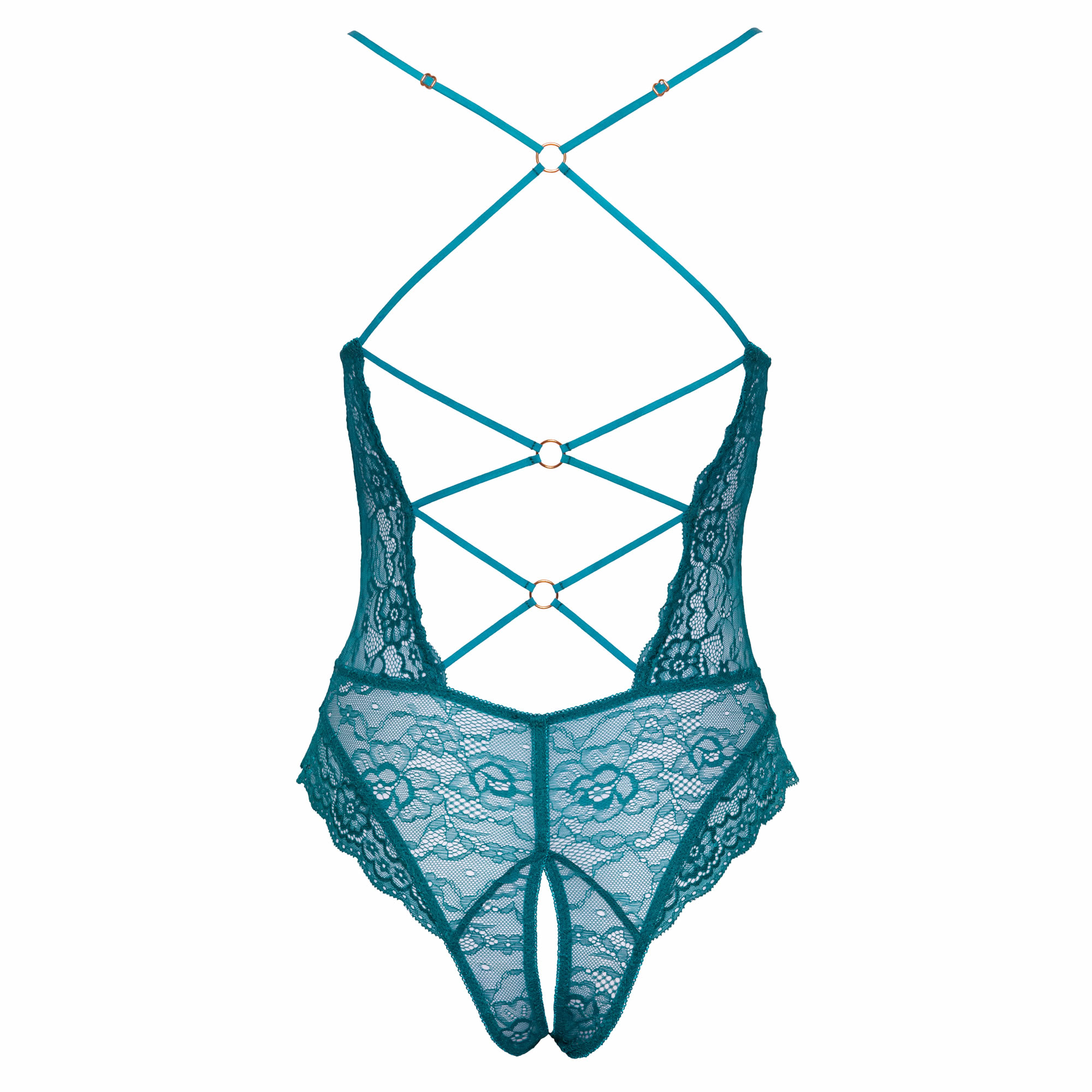Skab forførende øjeblikke med denne sensuelle ouvert body fra Cottelli LINGERIE, fremstillet i fine, petroleumsfarvede blonder, som elegant og blødt smyger sig om dine kurver.