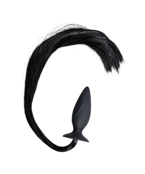 Giv din frække fetish-fantasi frit løb med HORNY Pony Anal Plug – en sort analplug med en lang, fyldig hestehale i realistisk pony-stil.