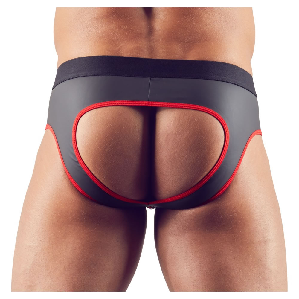 Denne jocktrusse kombinerer et råt og maskulint look med et sexet, matglitrende design i neopren-gummioptik.