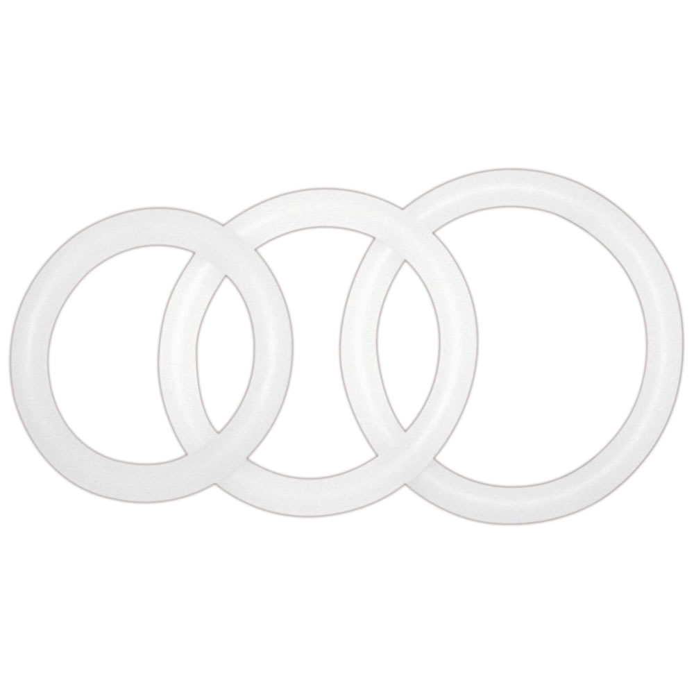 Tre transparente penisringe, der effektivt understøtter erektionen ved at holde blodet tilbage i penis.