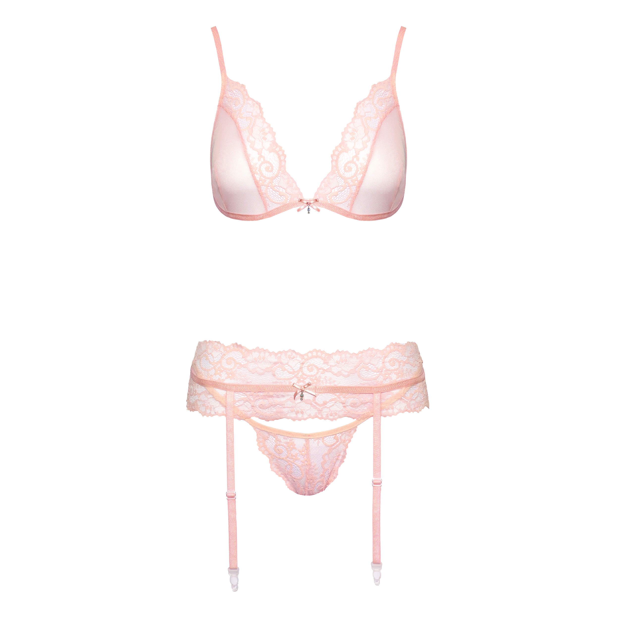 Sættet består af en blød bh, bindebånd og en g-streng, der smyger sig om kroppen med en blød og elastisk pasform for maksimal komfort.
