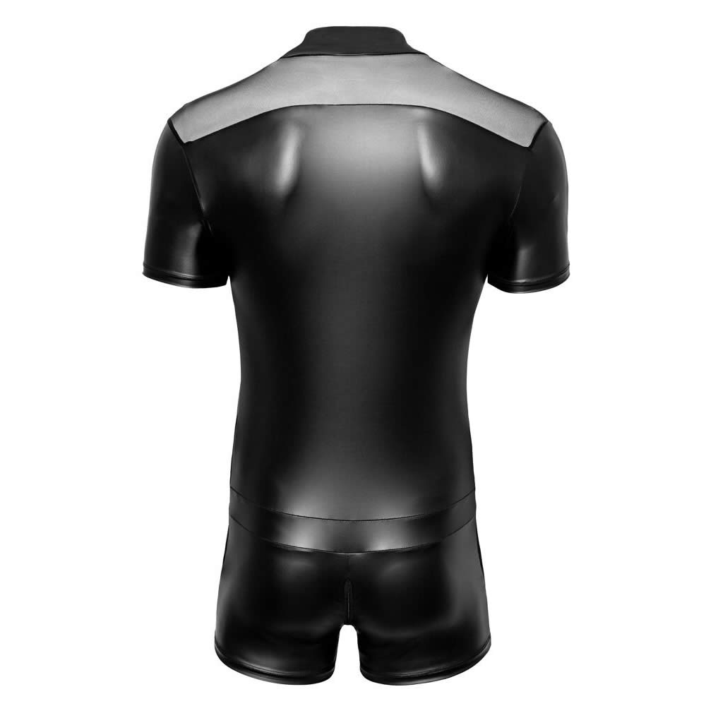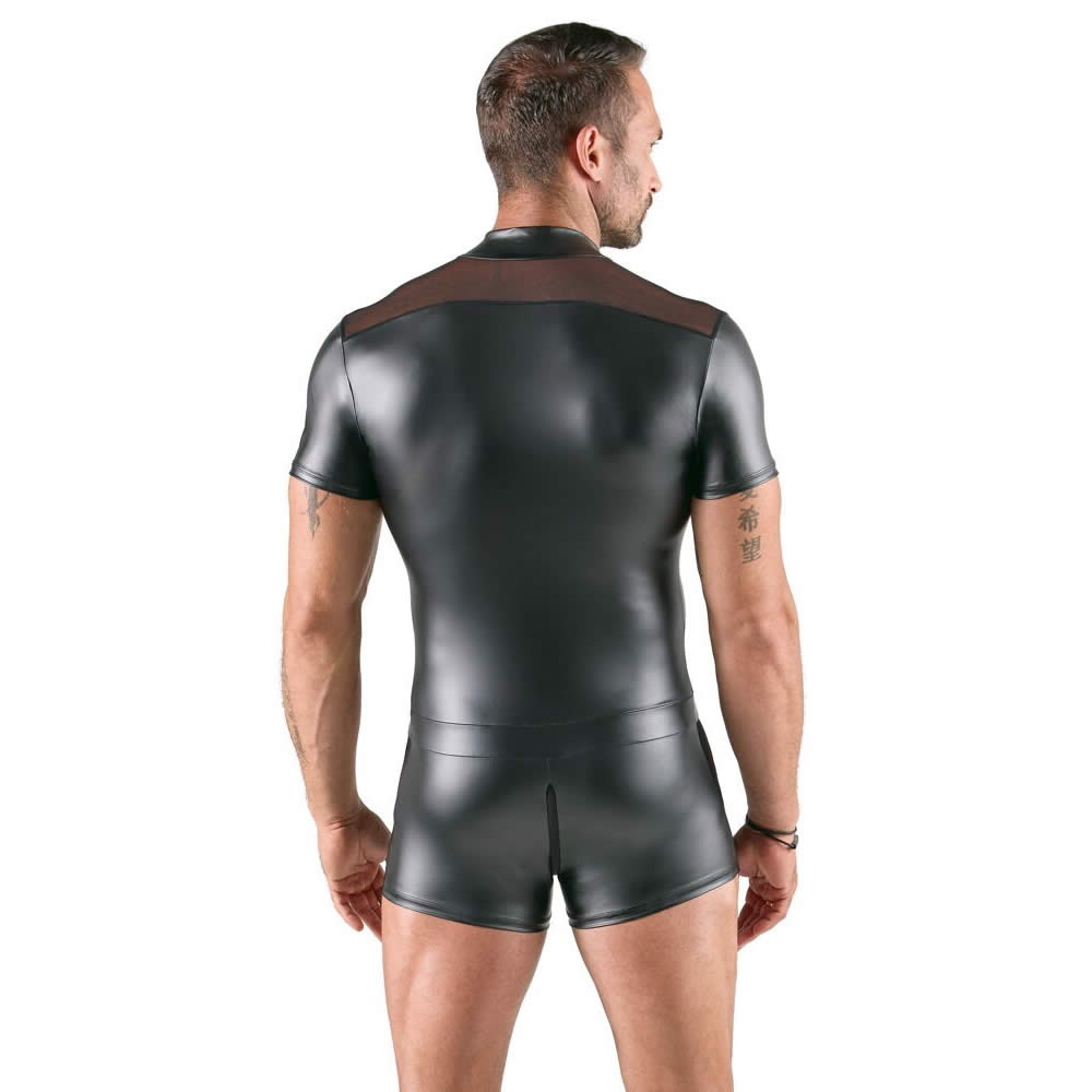 Blød, elastisk pasform med ståkrave og mesh-detaljer for et maskulint og forførende look.