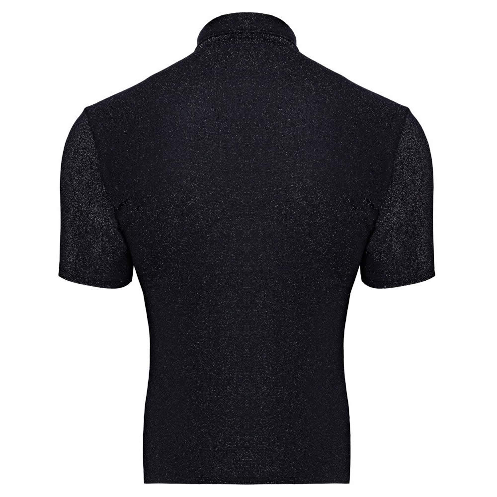 En tætsiddende, kortærmet skjorte i skinnende lurex-look, der forener glamourøs udstråling med fræk komfort.