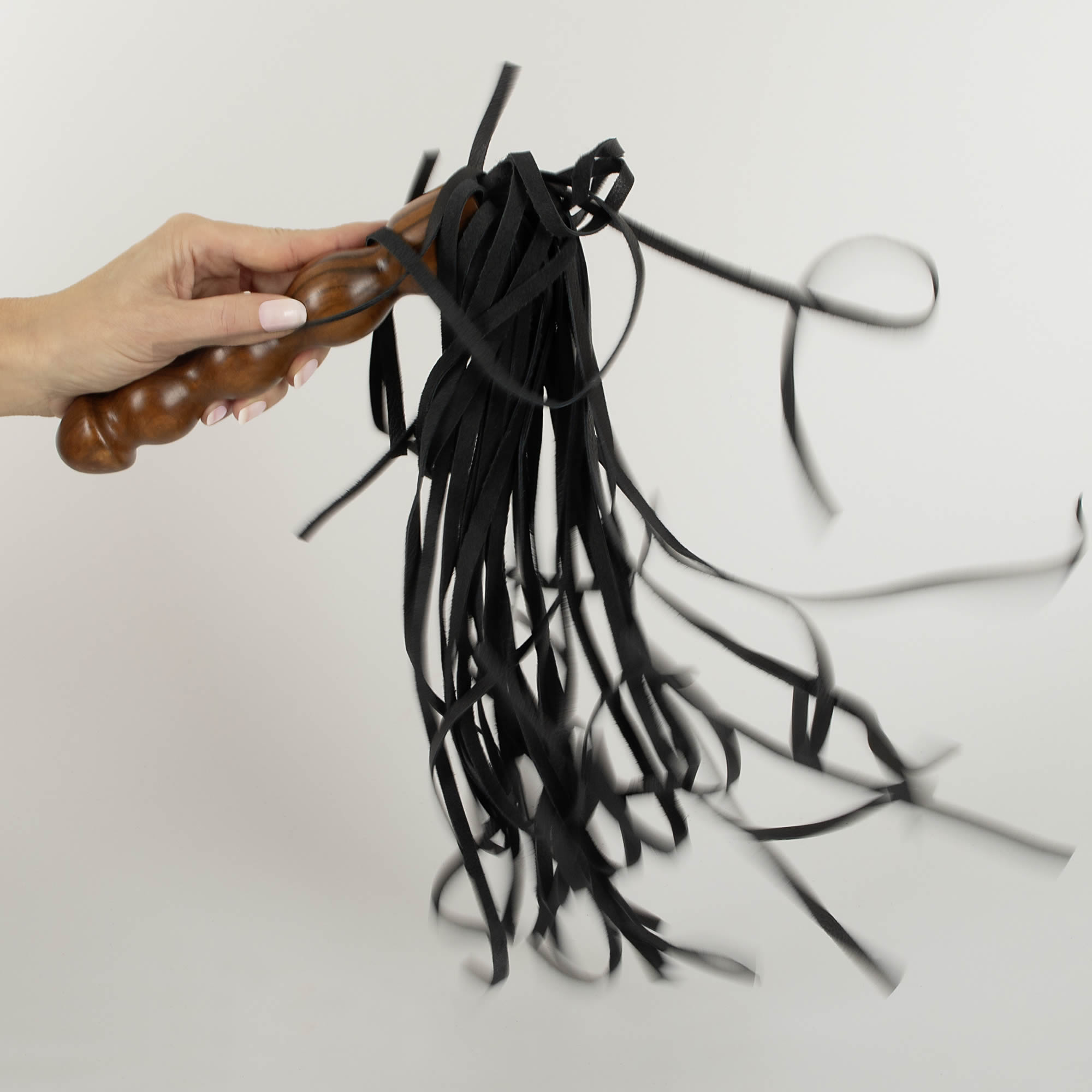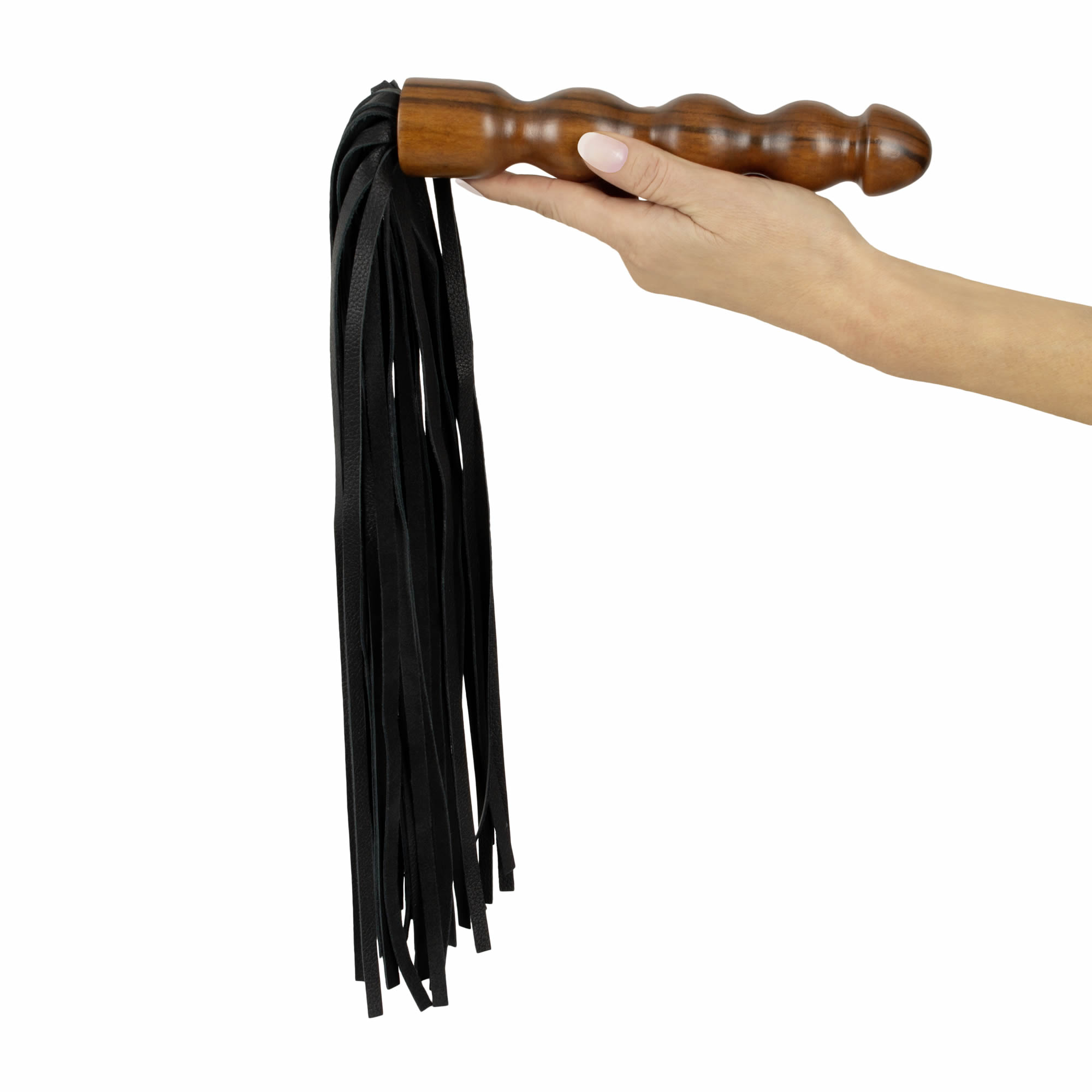 Med et smukt udformet, solidt træhåndtag og bløde, fleksible læderstrimler, kan du skabe alt fra blide strejf til kraftige slag – præcis som din partner fortjener det!