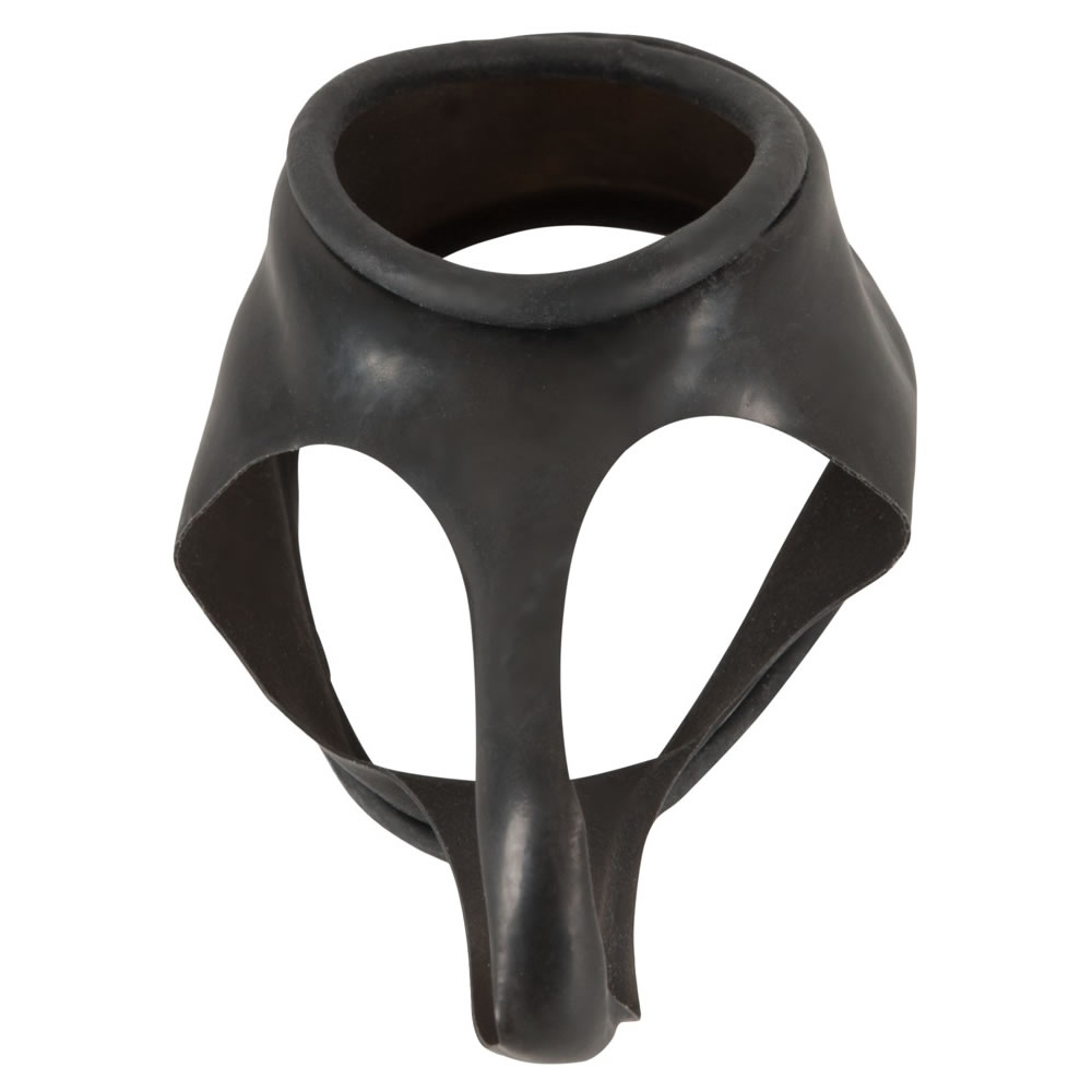 Med denne latex-penismanchet får du ikke blot en kraftig erektionsstøtte – du får også en pirrende testikeldeler, der masserer og adskiller kuglerne som en insisterende, æltende hånd.