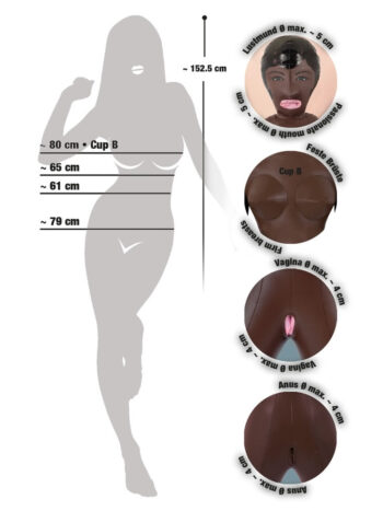Pust dukken hurtigt op til fuld størrelse (157 cm), og nyd hendes realistiske udseende og detaljer.