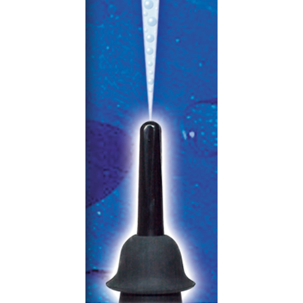 Den sorte ballon på 10,5 cm i længden og 5 cm i diameter fyldes med væske, som du efter humør kan sprøjte ind i dit indre med enten den bløde douche-påsats eller den spidse påsats – begge skabt til at give dig en intens og fantastisk følelse.