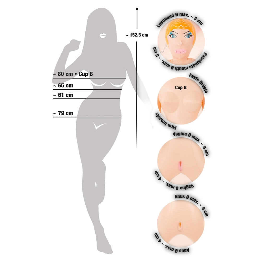 Dukken kan pumpes op til legemsstørrelse, så du kan opleve hendes glødende begær på tætteste hold.