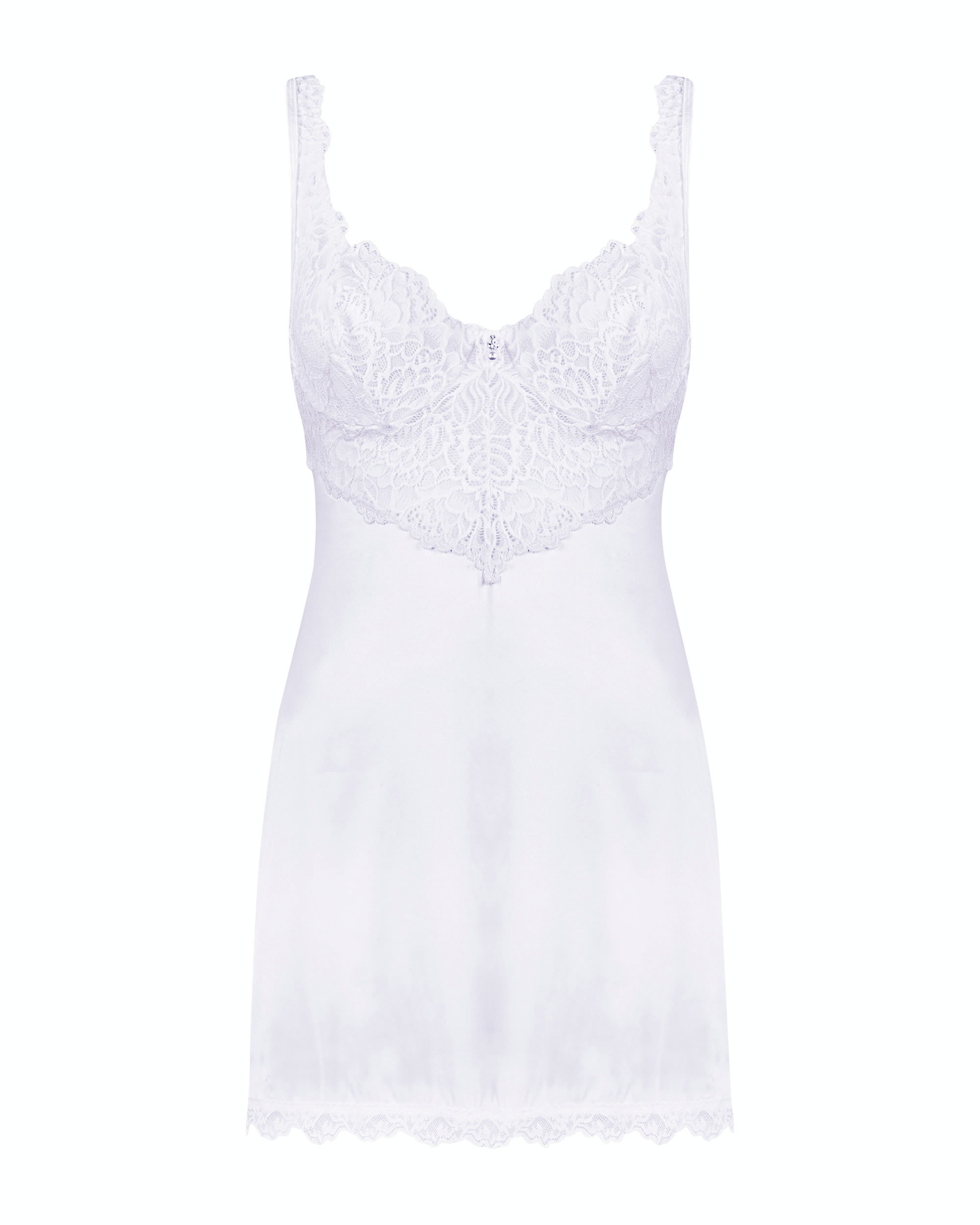 Denne smukke, taljerede lingerikjole er designet til at fremhæve dine kurver med delikate blonder og en feminin silhuet.