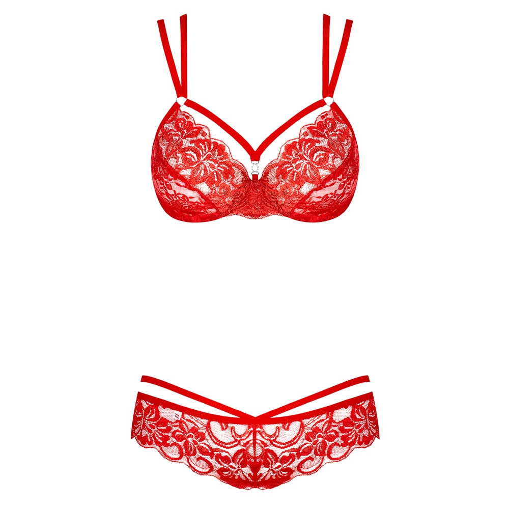 Dette flotte sæt består helt af blonder og stråler med små rhinestone-elementer på BH og trusse.