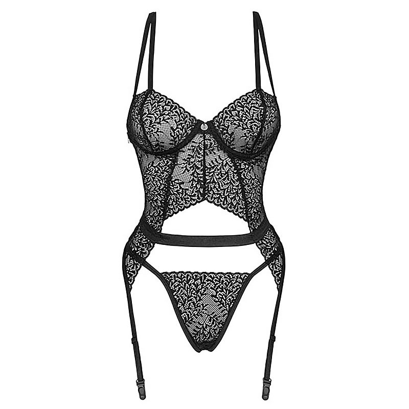 Undertrøje og strømpesæt Yaskana fra Obsessive lavet af fine blonder.