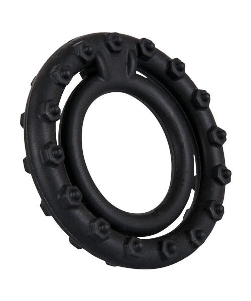 Den noprede penisring giver et stramt, stimulerende greb omkring penis, mens den større ring trækker let i pungen og øger presset – perfekt til dig, der elsker følelsen af spænding og kontrol.