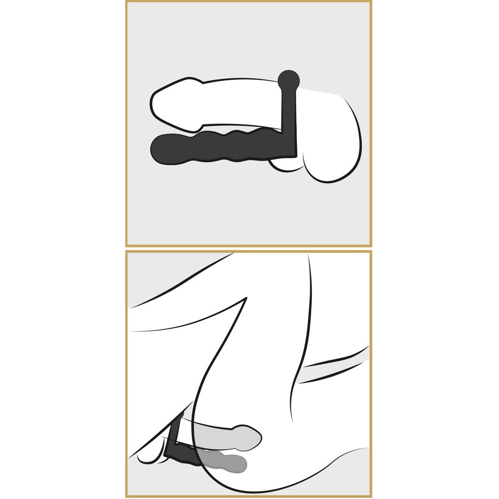 Her kombineres en stram penisring, en anal kugledildo og en vibrerende klitorisstimulator i ét og samme frække design, der pirrer alle sanser – på begge kroppe.