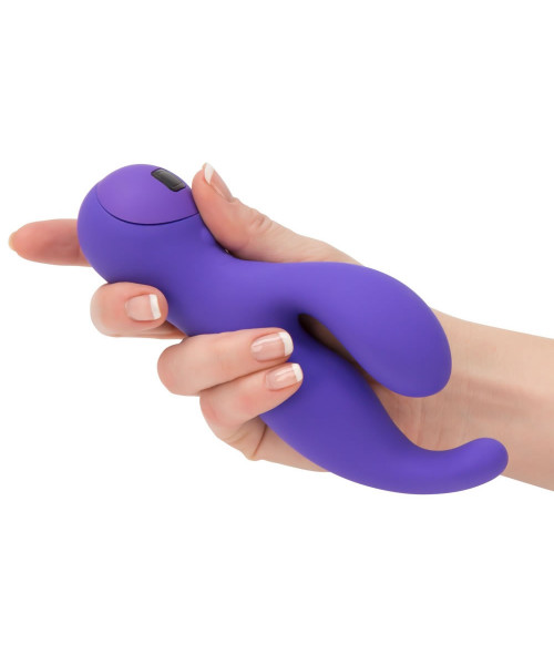 The vibrator also has a bulging clitoral stimulator. 2 motors – one in the shaft and one in the clitoral stimulator.