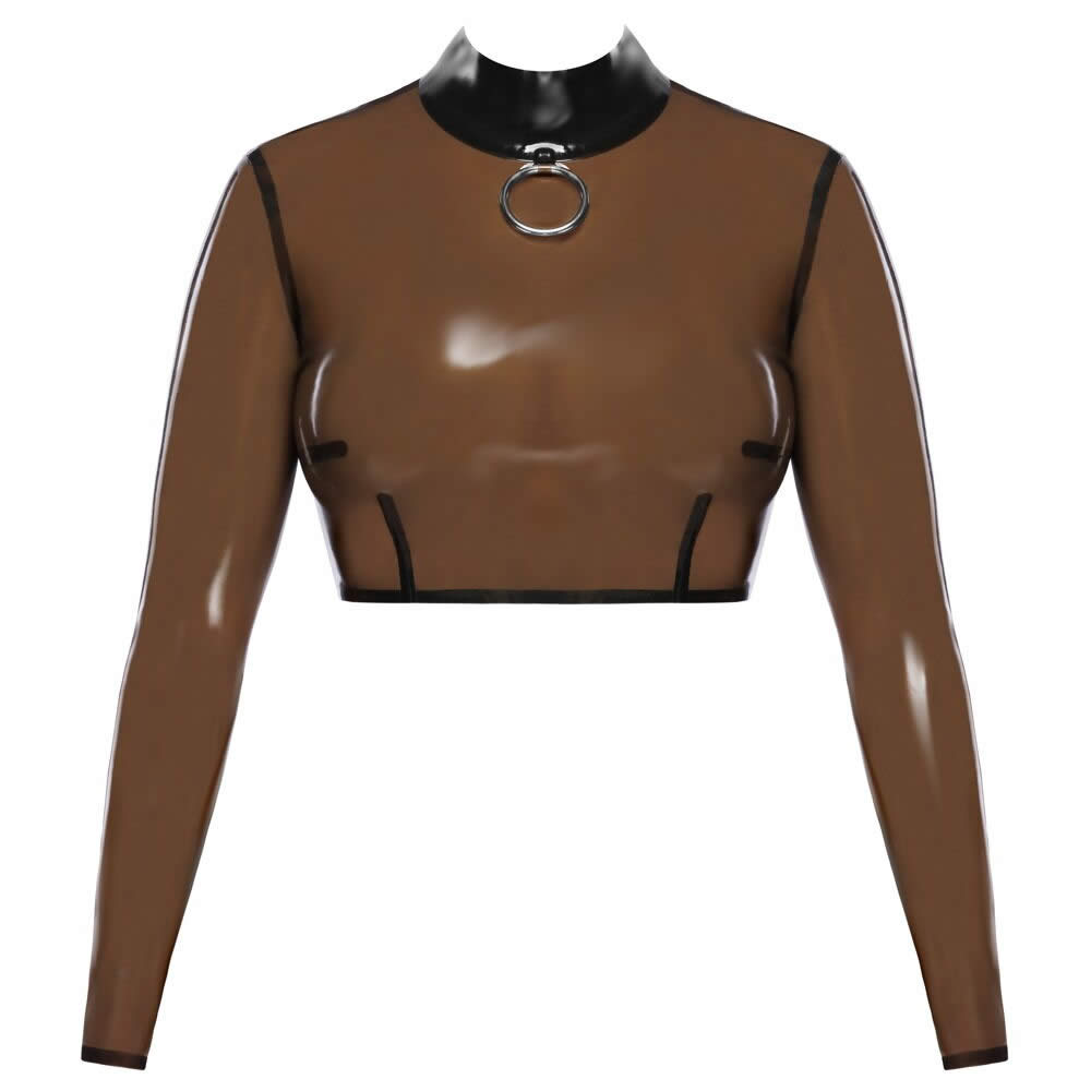 LateX Langærmet Mavefri Skjorte – Gennemsigtig & Sensuelt Design