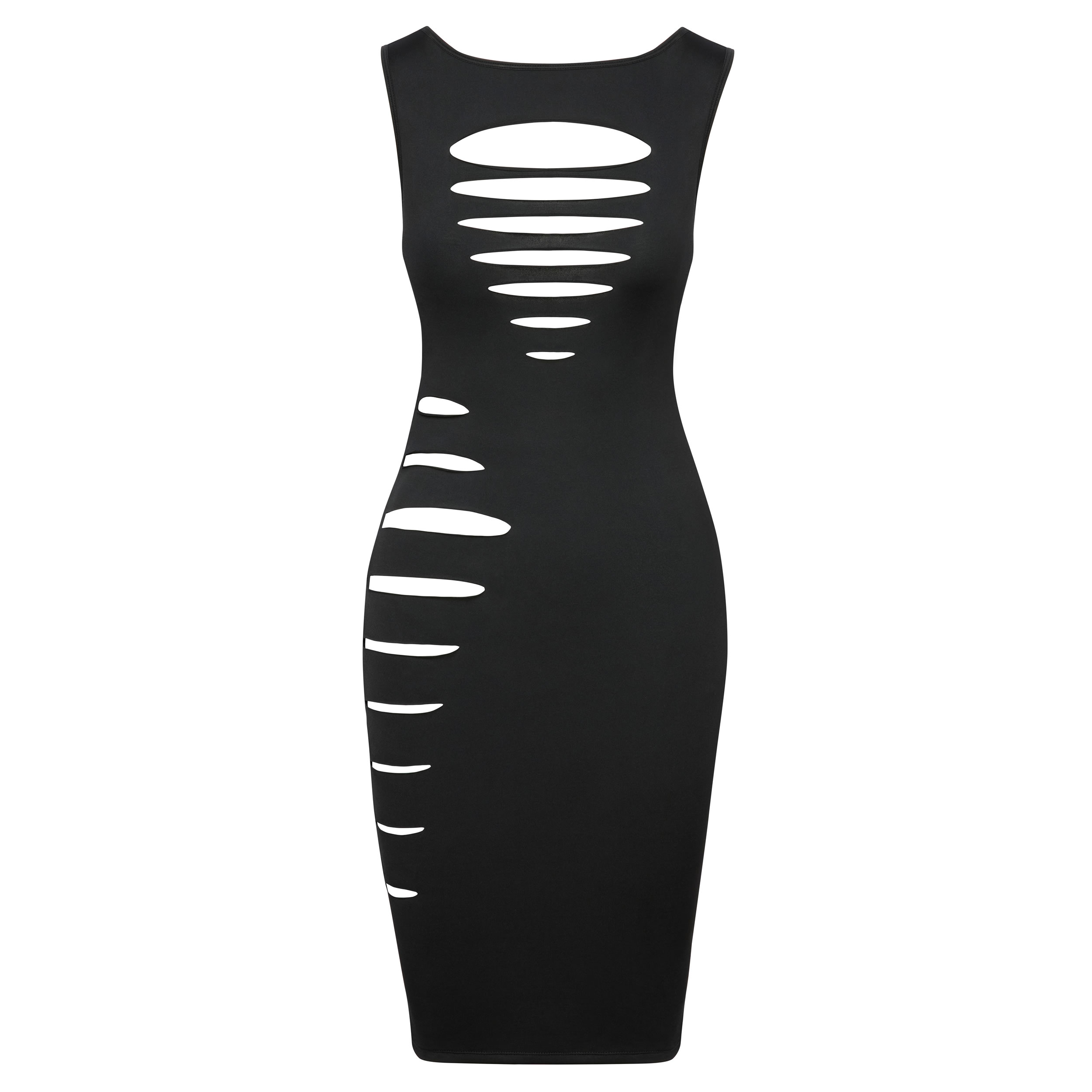 De strategisk placerede udskæringer foran og langs siden giver et spændende indblik og tilføjer en ekstra dimension af sexappeal.