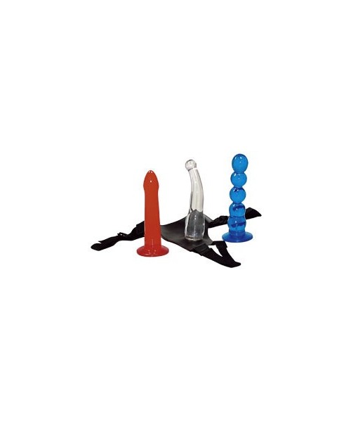 Strap-On Colour er et strap-on sæt med justerbare trusser og 3 udskiftelige dildoer.