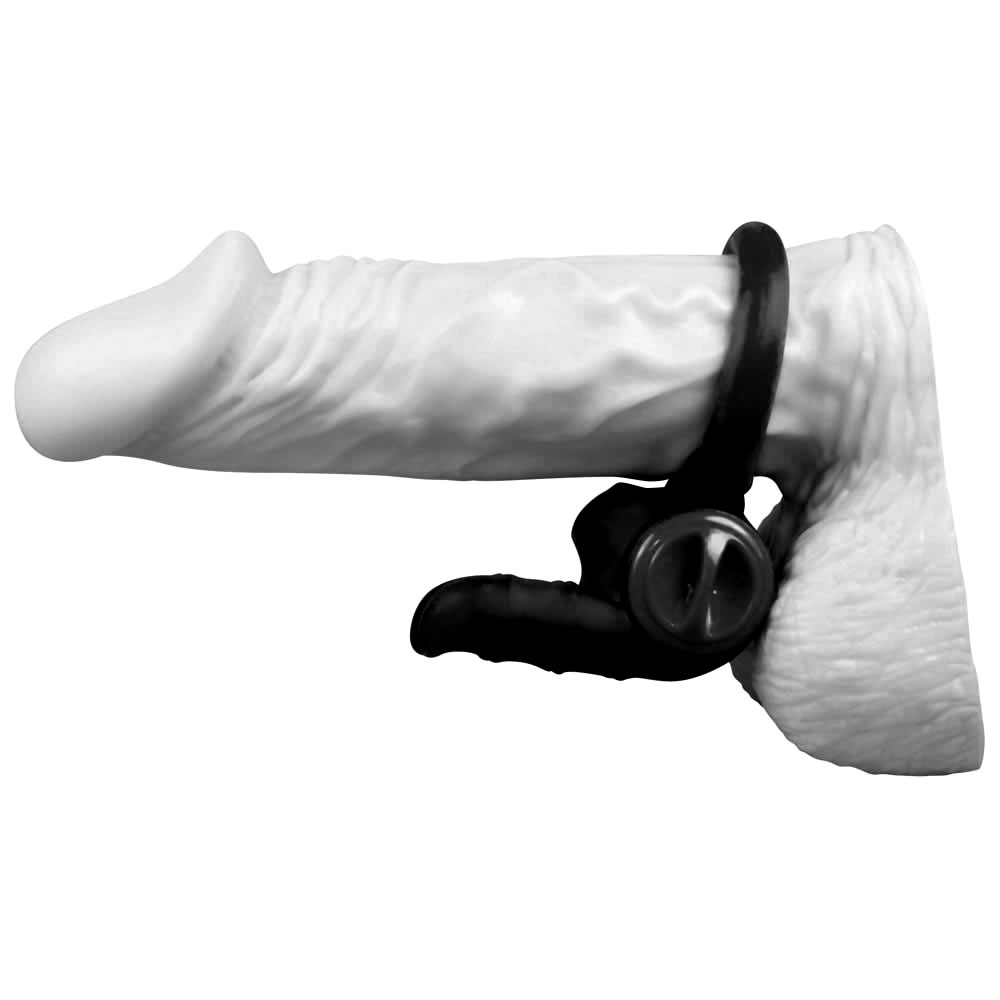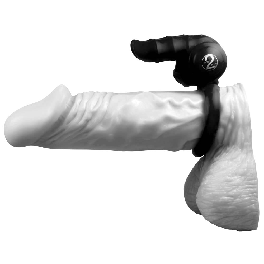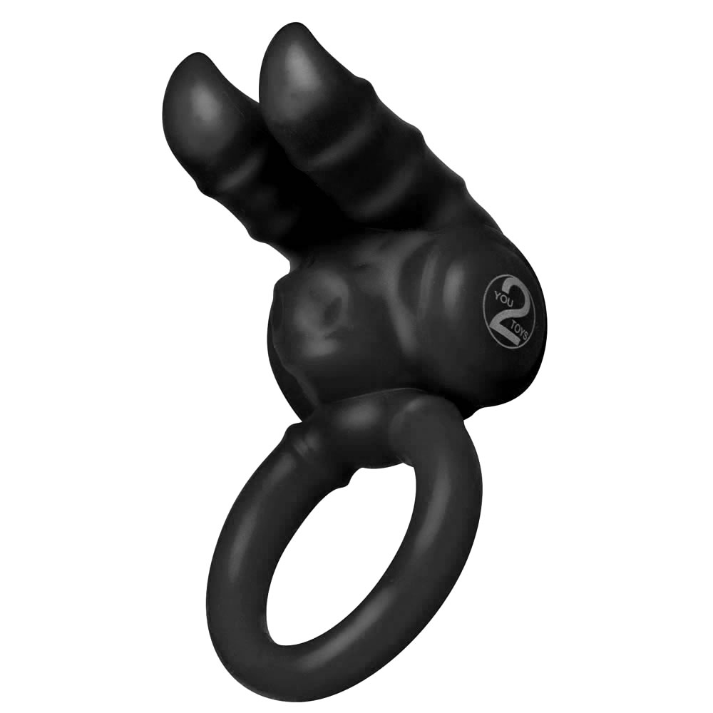 Vibrerende penisring med klitorispirredel formet som et tyrehoved med to horn – i hvert horn er der placeret en motor.