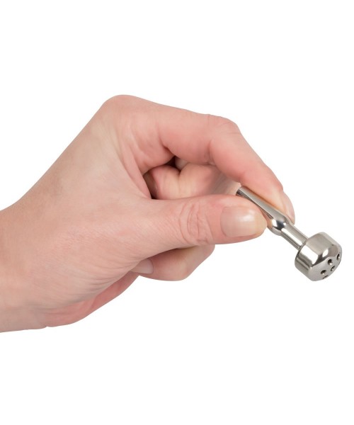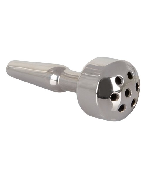 Denne elegante, sølvfarvede dilator har hele 7 små huller i spidsen, som spreder væske som en ægte minibruser – perfekt til leg med urin, ejakulat eller andet kinky play.
