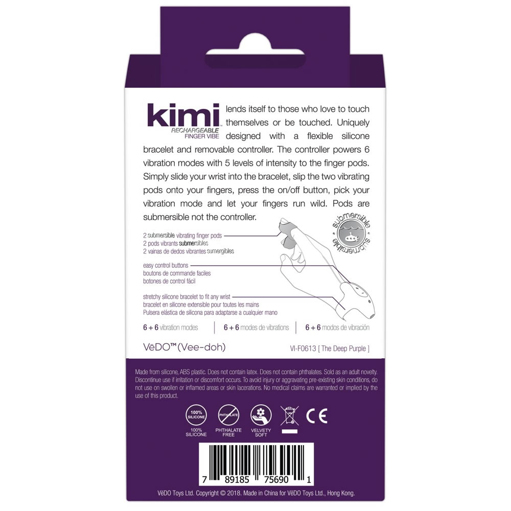 Den består af to bløde, fleksible vibrationshætter, som passer perfekt på fingerspidserne, og et fleksibelt silikonearmbånd, der indeholder kontrolenheden.