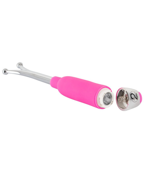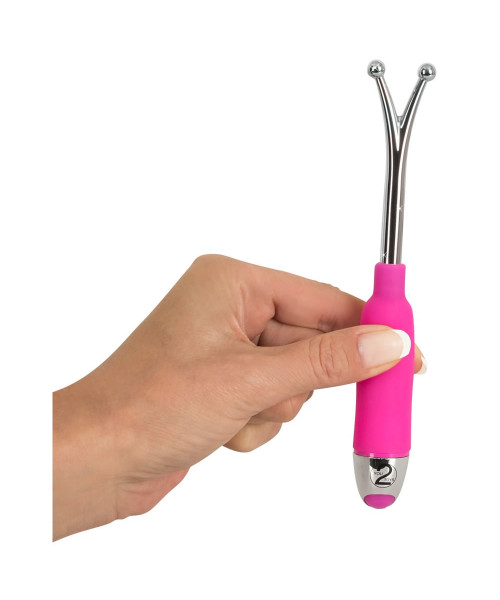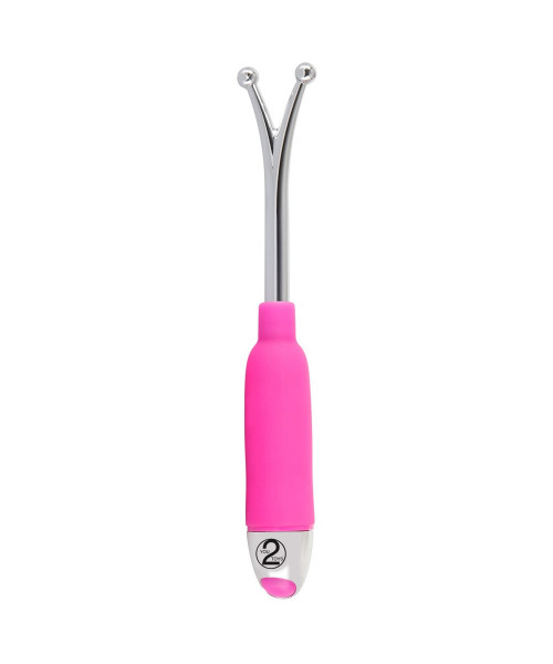 A special vibrating wand with two ball-shaped tips for spot-on clitoral, nipple and glans stimulation. With 7 vibration modes.