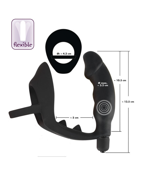 Den kraftige pikring giver dig en hårdere og længerevarende erektion, mens den vibrerende anal plug stimulerer bagfra og den knobrede perineumbro masserer dine følsomme punkter mellem pung og anus.