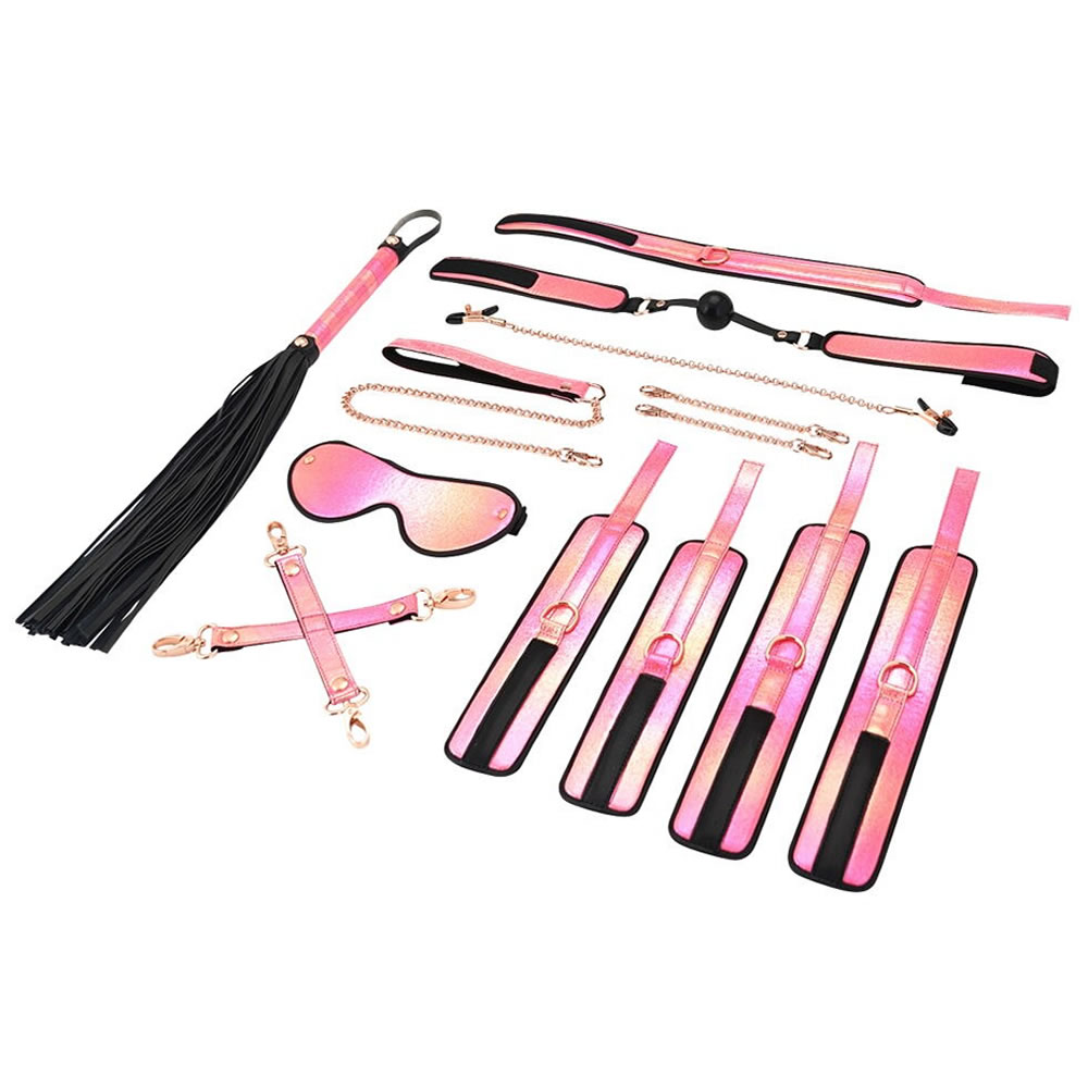 Med hånd- & ankelmanchetter, halsbånd med line, hogtie, blindfold, nipple clamps, pisk & gag ball, har du alt, hvad du behøver for at udforske spændende dominans- og submissionlege.