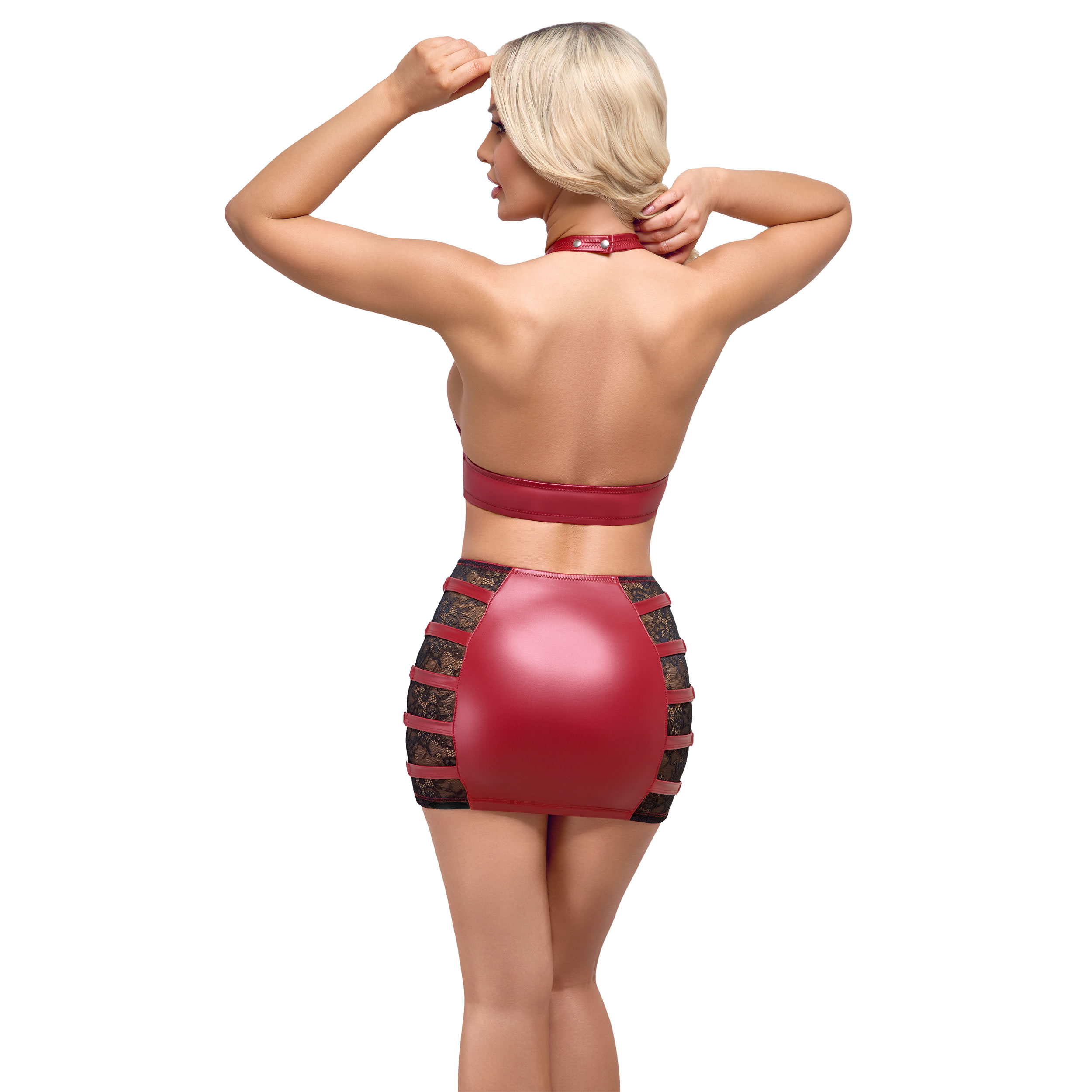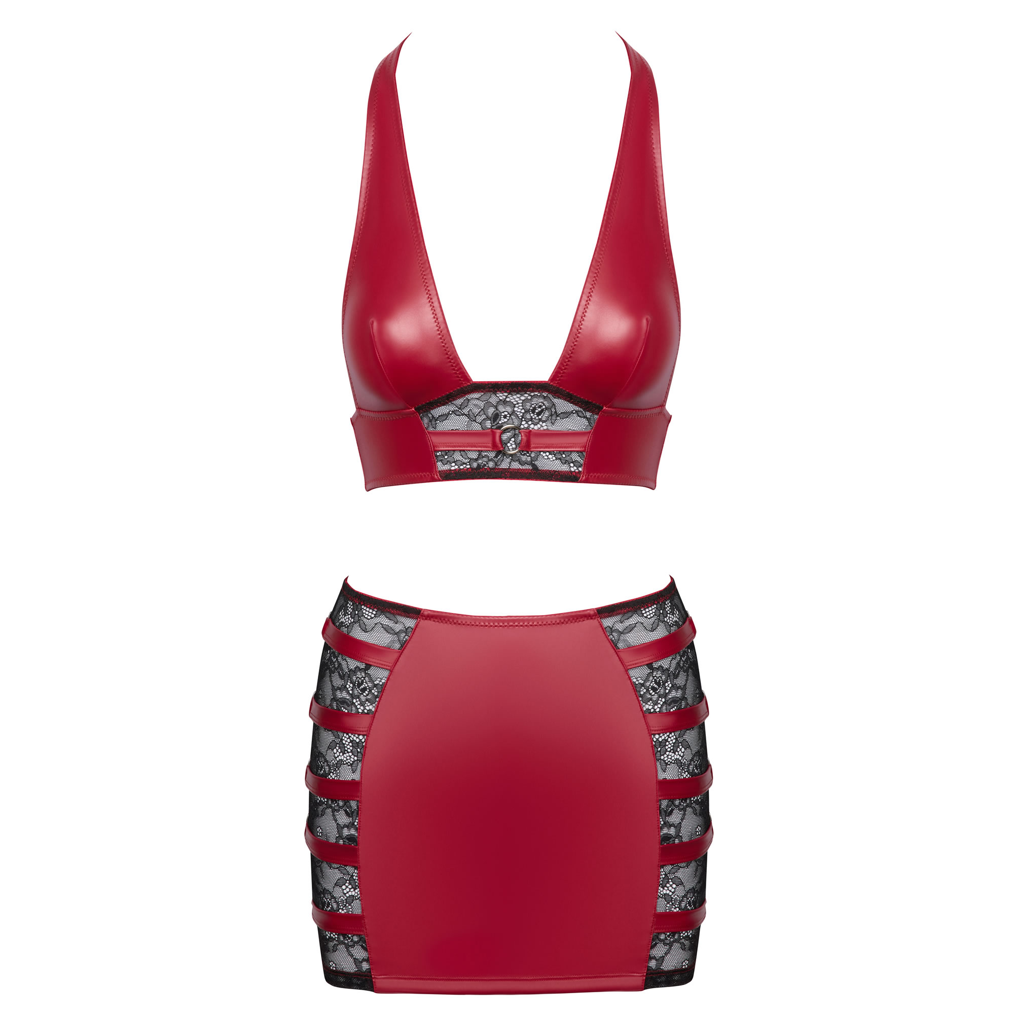 Gør din aften ekstra forførende med dette elegante og sexede sæt fra Cottelli PARTY! Kombinationen af skinnende rødt wetlook og delikate sorte blonder skaber et sofistikeret, men frækt udtryk.