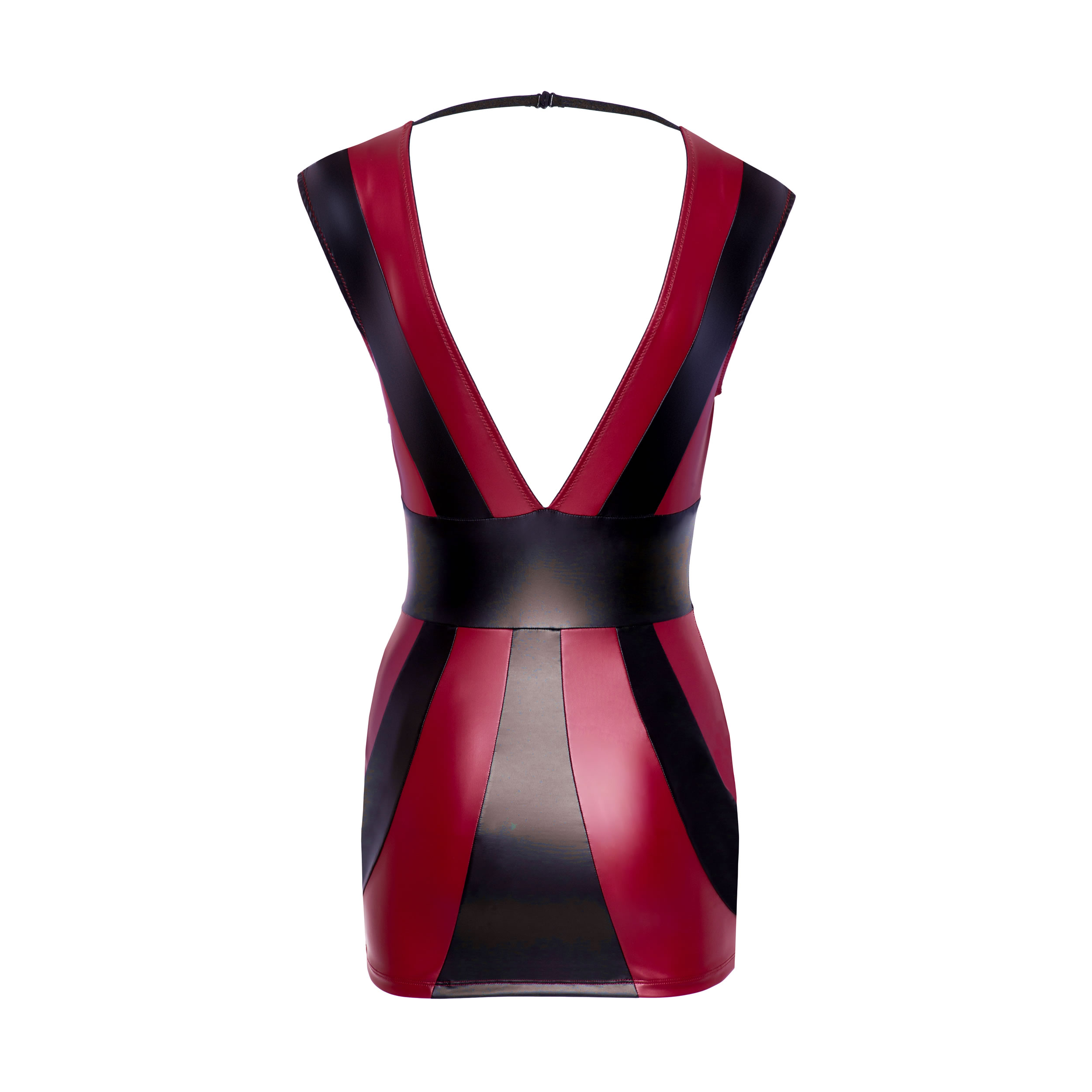 Med sin dybe udskæring både foran og bagpå sætter den kroppen i fokus, mens den ekstravagante stribe-styling tilfører et unikt og frækt touch.